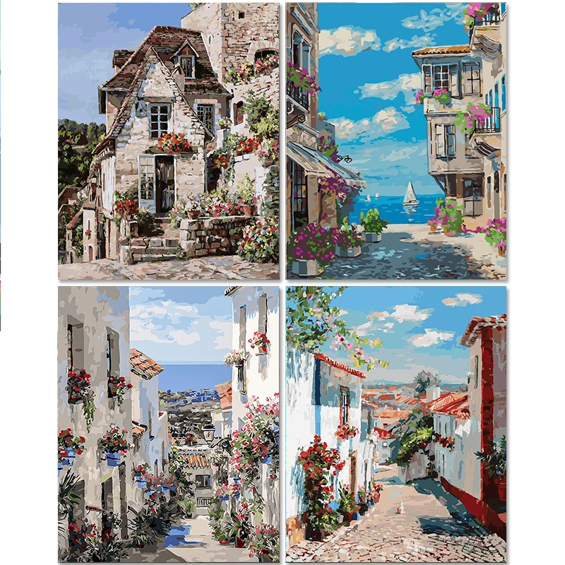 Набор для рисования по номерам Gatyztory, картина сделай сам в европейском городке, пейзаж, холст, ручная роспись, подарок, декор стен