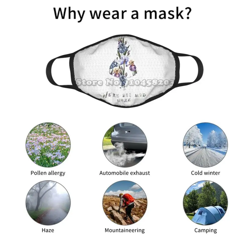 Многоразовая маска для лица от пыли we are All Mad Here с цветочным принтом Pm2.5, сделай сам, Алиса в были все сумасшедшие здесь через стекло Alice