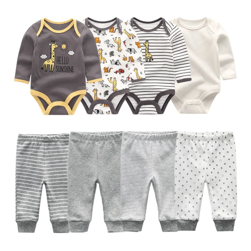 Осенняя одежда для маленьких девочек, хлопковые комплекты для новорожденных 68 шт., боди + штаны, одежда для маленьких мальчиков, зимние комплекты одежды, Roupas de bebe