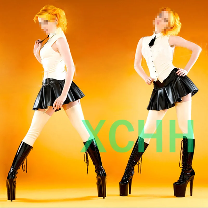 Сексуальная Женская латексная Клубная одежда, костюм для косплея, платье, топы и юбка с галстуком, без носков, костюмы на Хэллоуин для женщин, фетиш