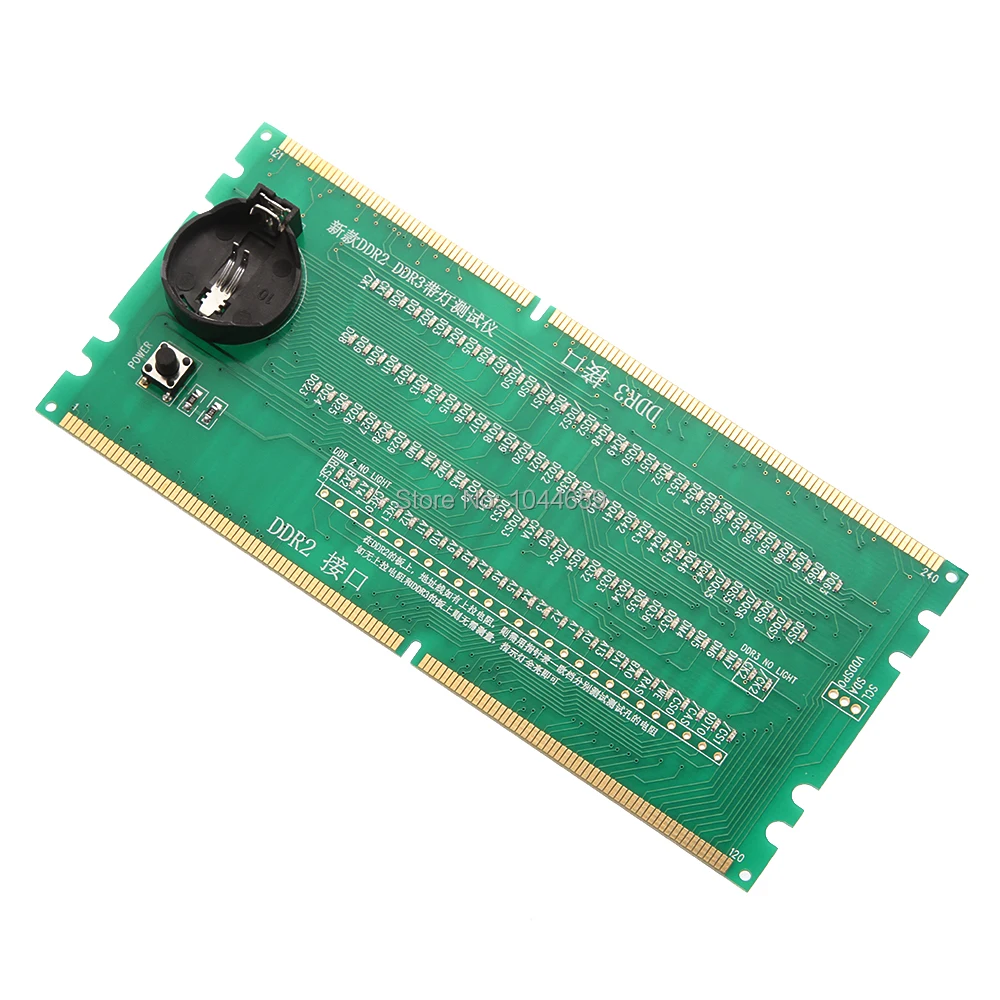 1. Установите батарею 3 В (CR2032) на тестер, проверьте каждый слот памяти соответствующей материнской платы DDR2, DDR3. Материнская плата не имеет питания, нажмите кнопку включения на тестере, тестовая лампа все яркая и яркость одинаковая. Сигнальная линия нормальная, если светильник не светится или не очень яркий, этот сигнал имеет ошибку короткого замыкания при открытом замыкании. (Примечание: При тестировании материнской платы intel Материнские платы не подключаются к ЦП, и различные карты подключения могут быть измерены в тесте для материнских плат AMD (например, материнская плата 940, материнская плата AM2, материнская плата 1207, 1366 Материнская плата), для подключения процессора светильник будет ярким.