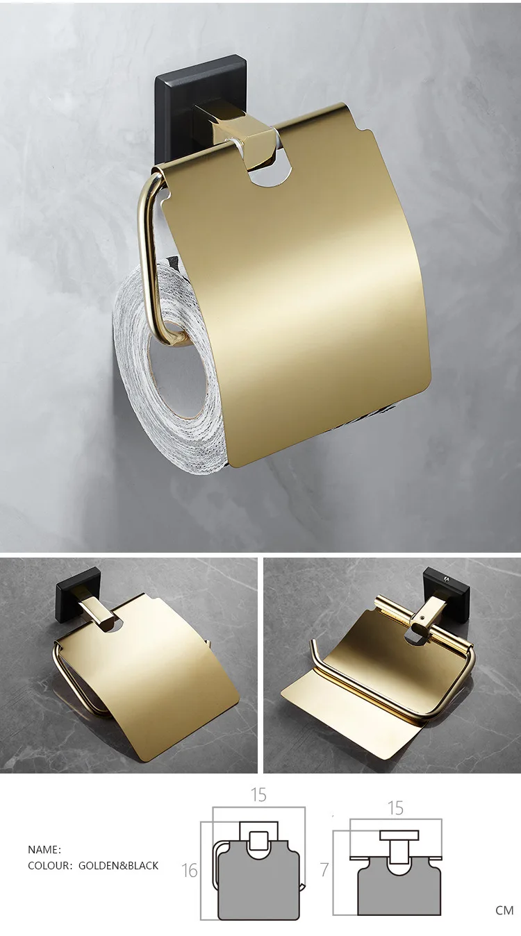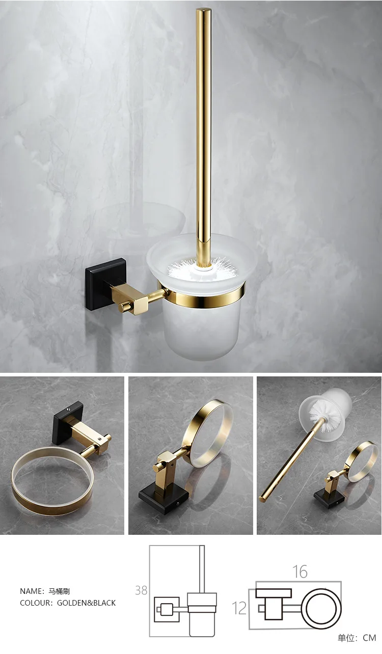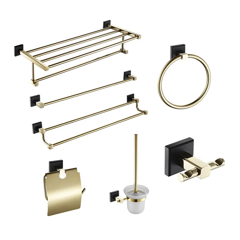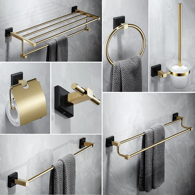Аксессуары для ванной комнаты, Полка для полотенец, держатель для бумаги, держатель для туалетных щеток, держатель для полотенец, латунный золотой набор аксессуаров для черной ванны