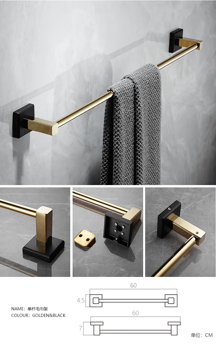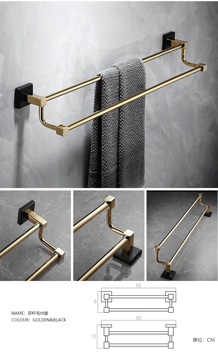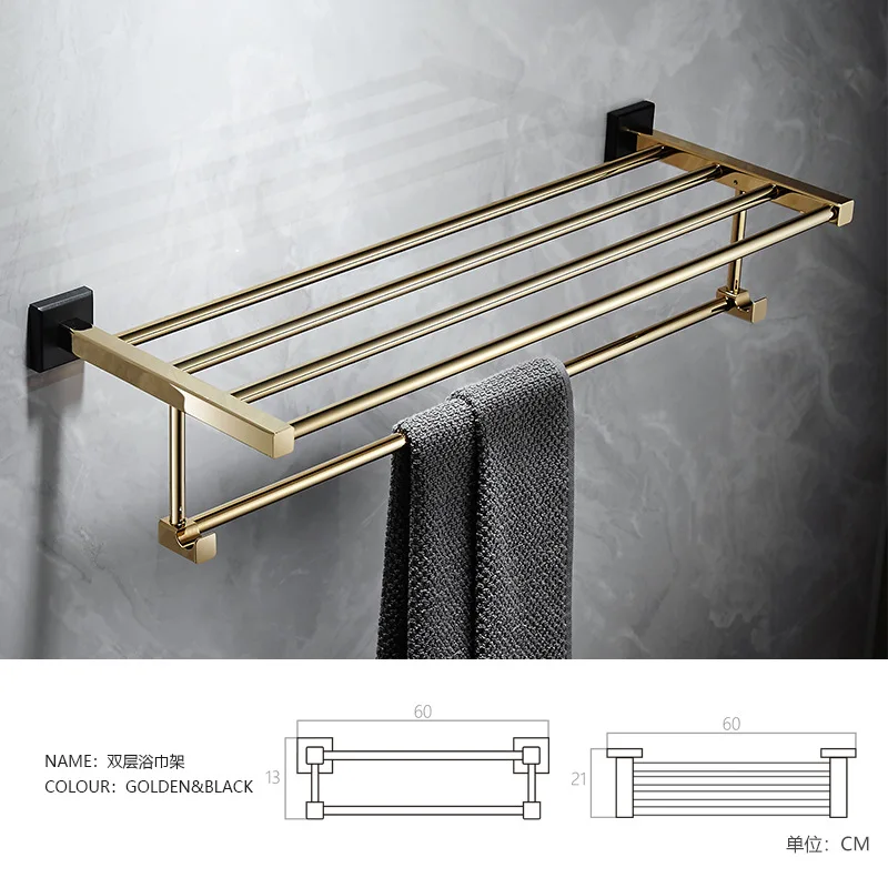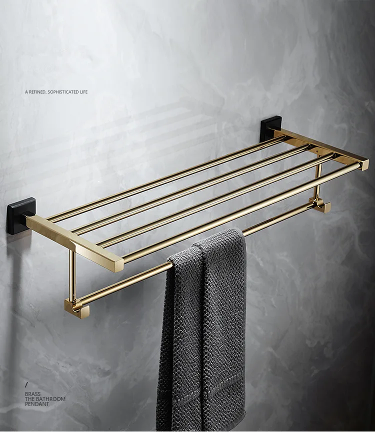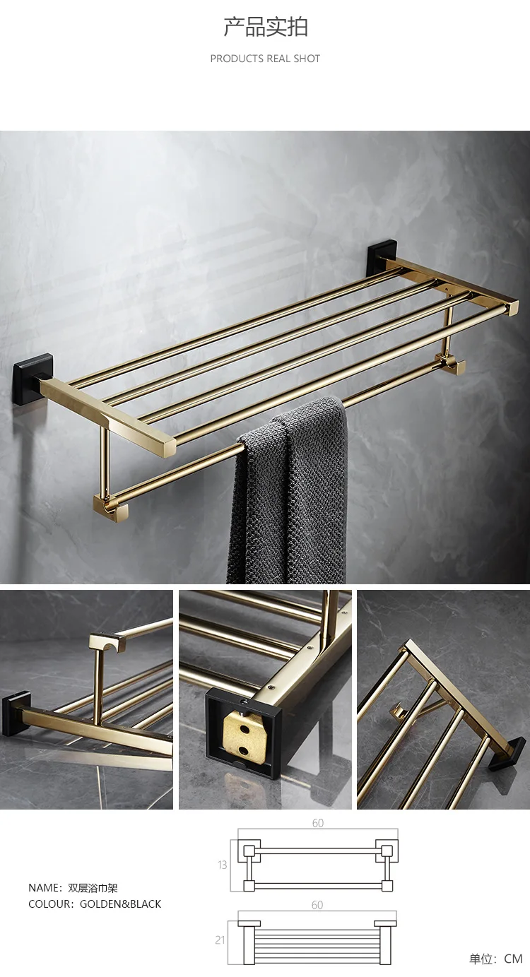 Аксессуары для ванной комнаты, Полка для полотенец, держатель для бумаги, держатель для туалетных щеток, держатель для полотенец, латунный золотой набор аксессуаров для черной ванны