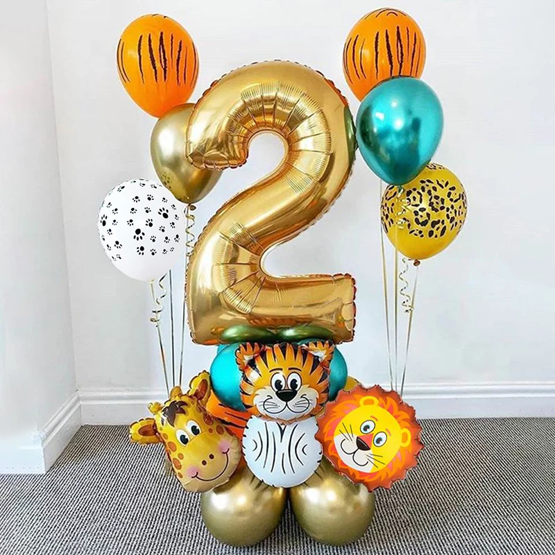 Набор воздушных шаров из фольги джунглей, металлический латексный Гелиевый шар, Золотой номер, Globos, для детей, для первого дня рождения, вечеринки, Детские воздушные шары для душа