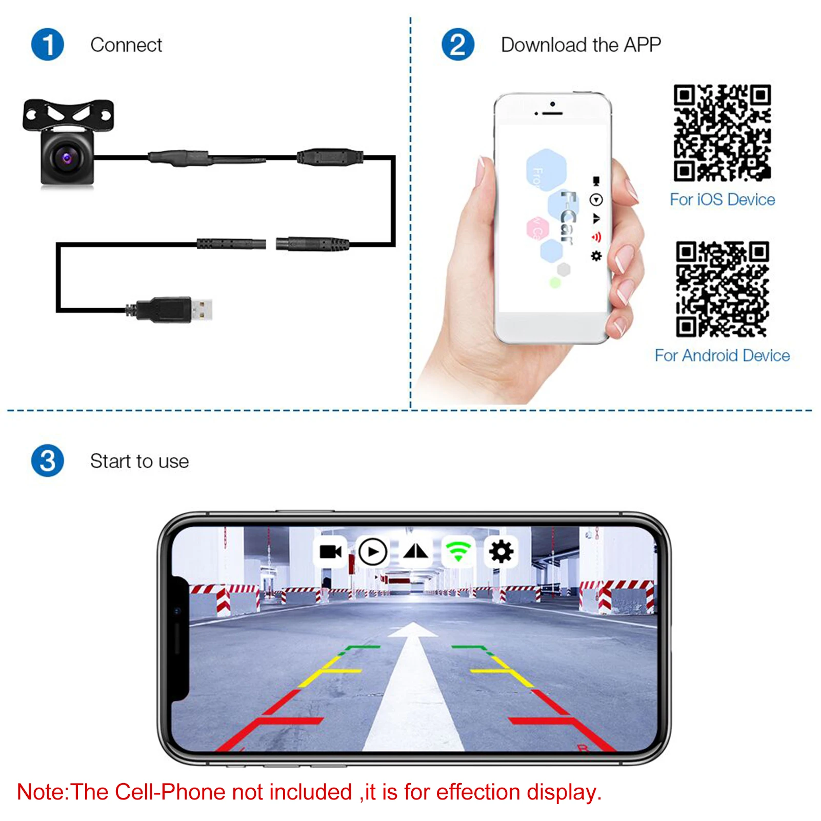 Беспроводная камера заднего вида с USB-кабелем и поддержкой Wi-Fi