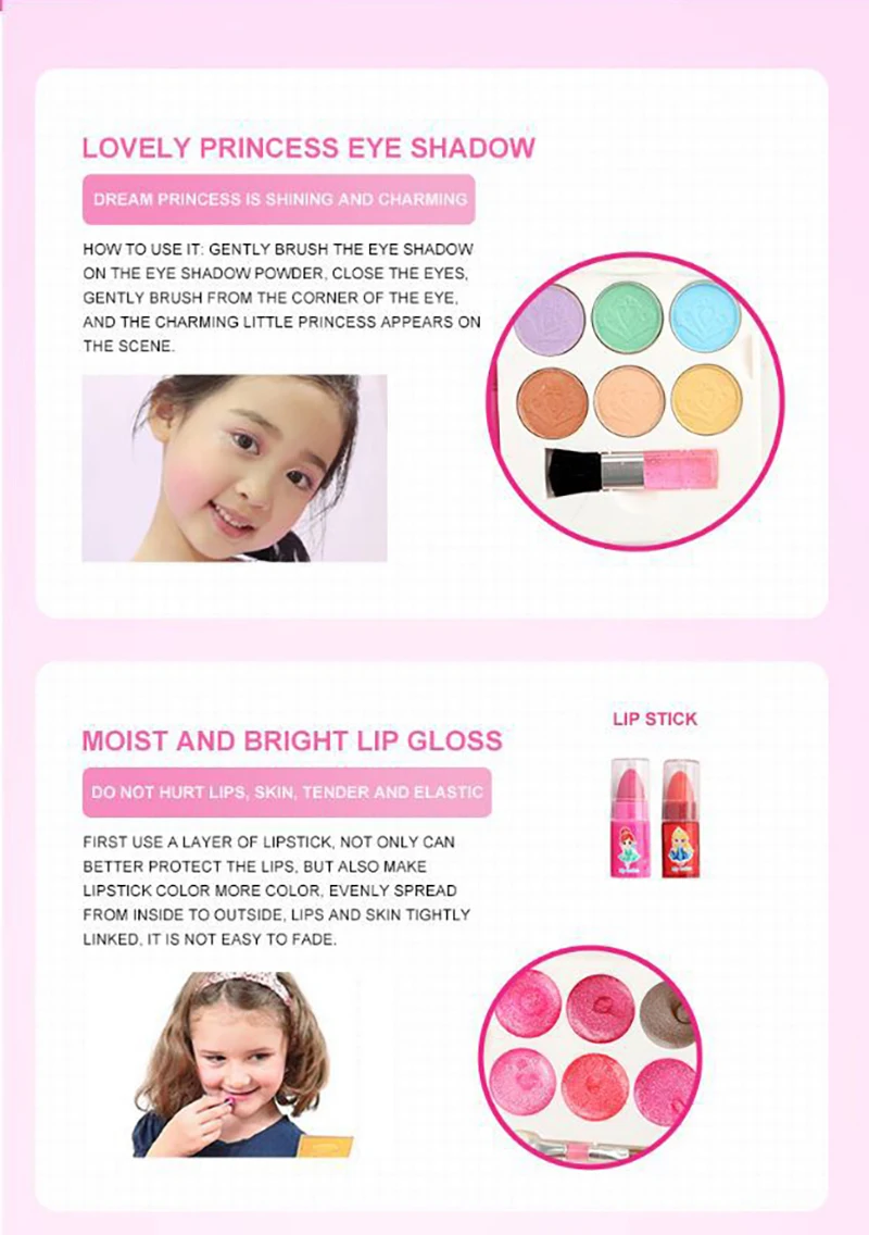 Безопасная косметичка принцессы для девочек, косметичка для ролевых игр, игрушка для салона красоты, набор инструментов для макияжа, детские косметические подарки на день рождения