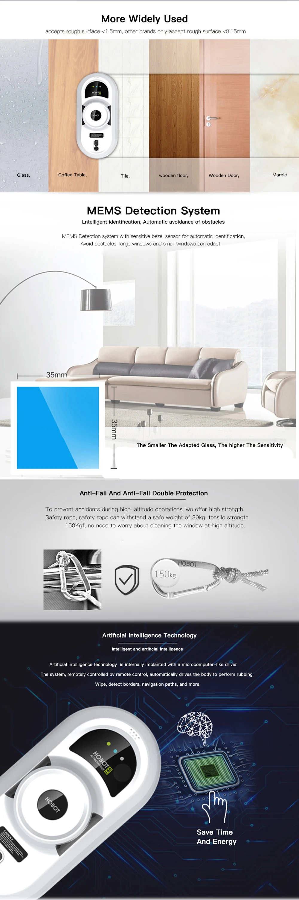 Робот-пылесос для мытья окон Hobot 188 с функциями мытье окон, зеркальная стеклянная дверь