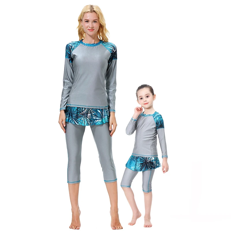 Размера плюс хиджаб с длинными рукавами Мусульманский купальник, юбка, семейный купальник, Женский и женский купальник, Borkini