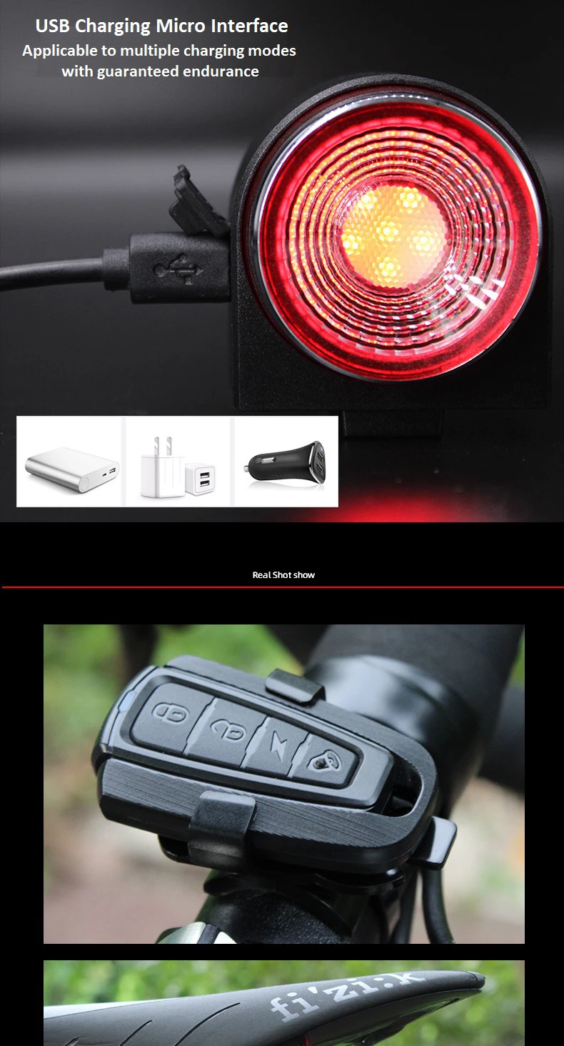 Светодиодный USB Перезаряжаемые задняя подсветка на велосипед светильник тормозная колодка для обнаружения велосипедный задний фонарь Беспроводной дистанционного Управление Велоспорт Хвост светильник сигнальный звонок
