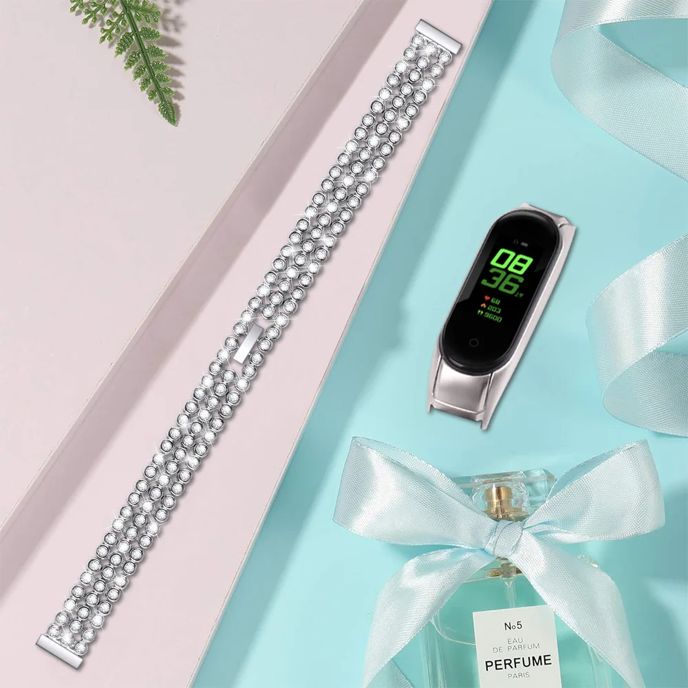 Ремешок для часов, из нержавеющей стали, с бриллиантами, для Xiaomi Mi Band 3, 4, 5