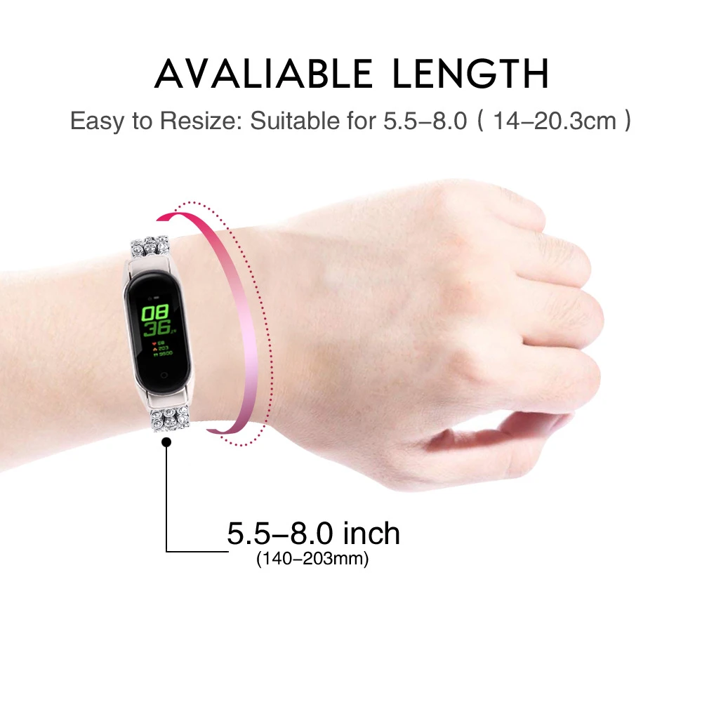· Тип товара:Женский ремешок для браслета с бриллиантами для Xiaomi Mi Band 3 4 5