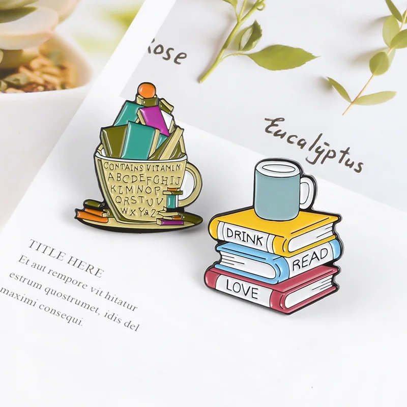 Эмалированная заколка для чтения напитков, кофейных цветов на заказ, брошь на рюкзак, булавка для одежды, мультяшный значок, бижутерия для чтения, подарок для друзей