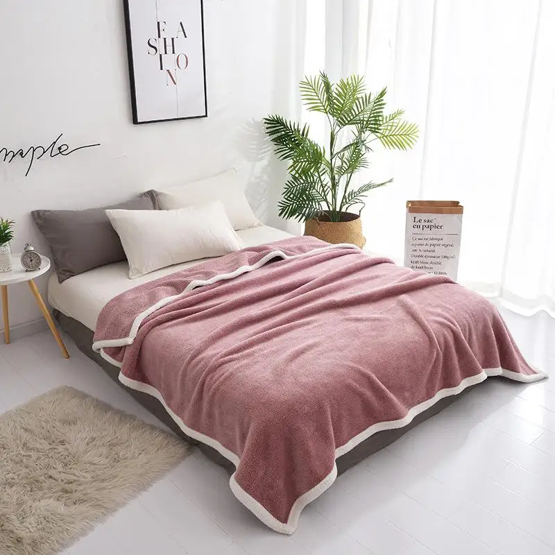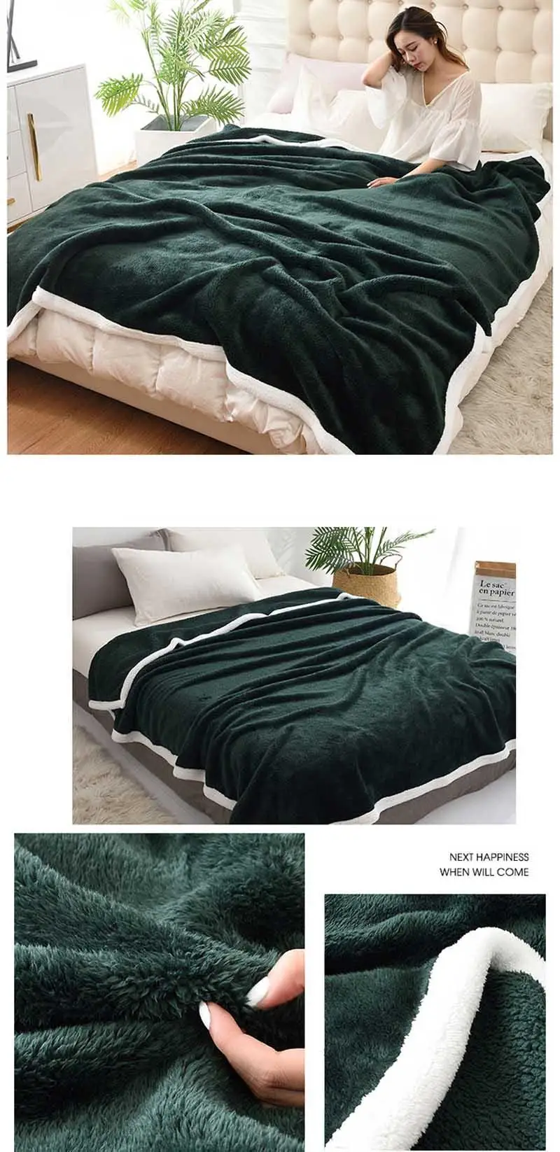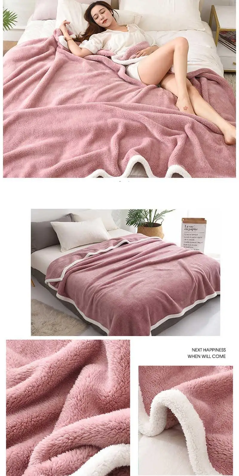 Зимнее утолщенное однотонное одеяло из ягненка и кашемира для одного, двух, фланелевое одеяло s для дивана, кровати, дорожное портативное утепленное одеяло