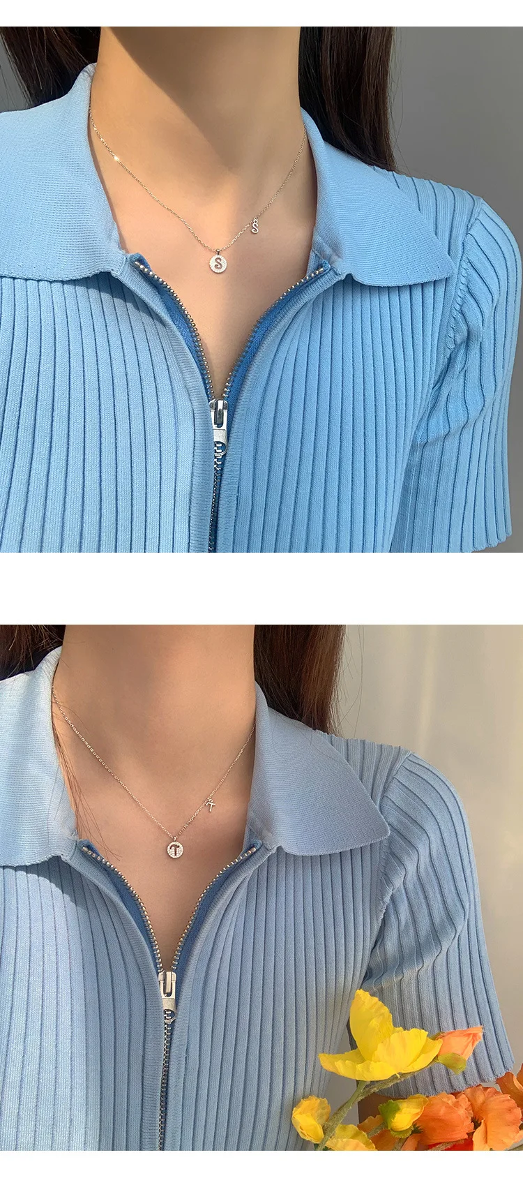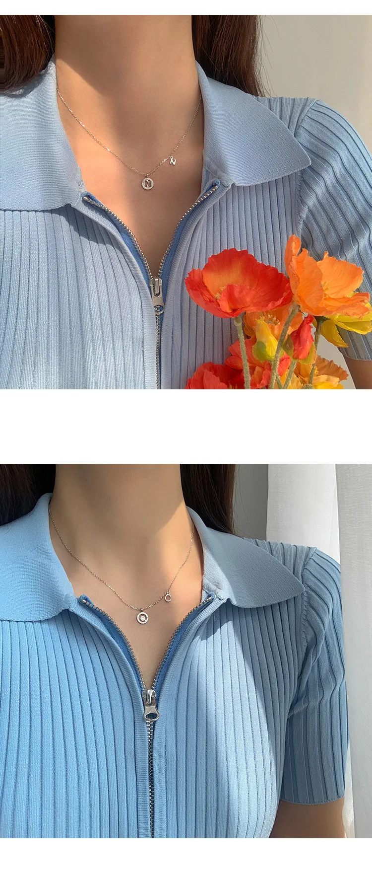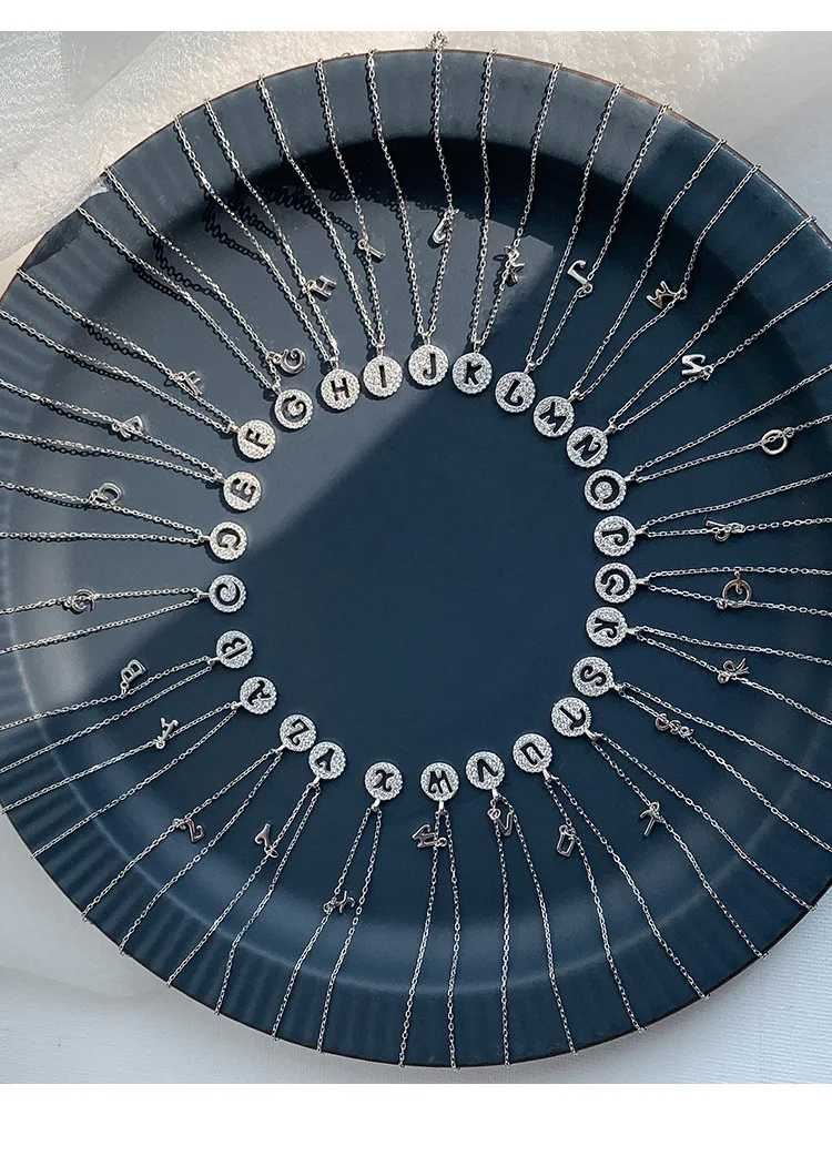 Модное ожерелье с алмазным изящным A-Z 26 букв, кулон из стерлингового серебра 925 пробы, модное женское ювелирное изделие, милая цепочка до ключицы
