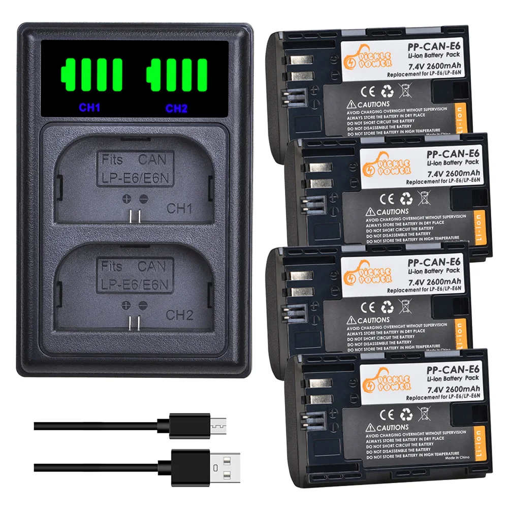 Внешняя аккумуляторная батарея 2600 мАч и двойное зарядное устройство USB со светодиодной подсветкой и портом Type-C для Canon EOS 5DS R 5D Mark II 5D Mark III EOS 6D 7D 60D 70D