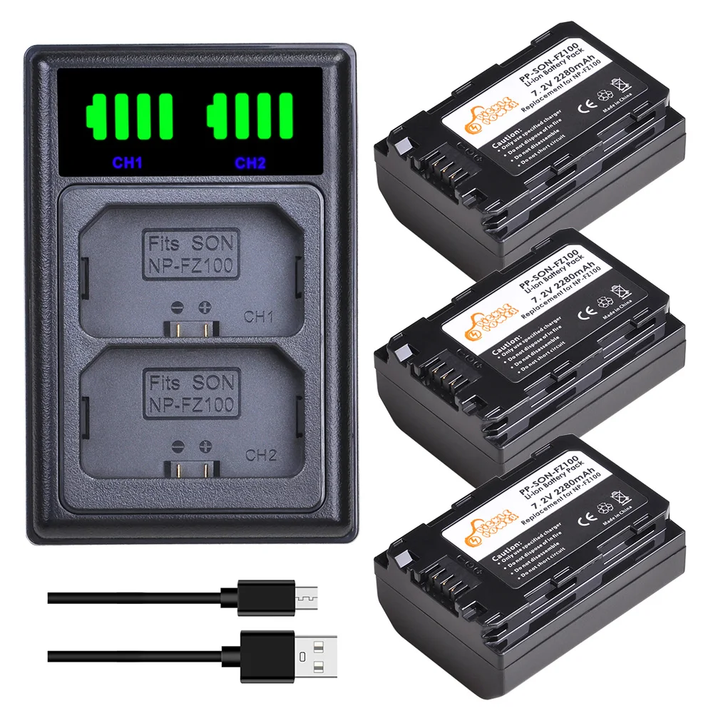 Аккумулятор NP-FZ100 NPFZ100 и новое двойное зарядное устройство USB со светодиодной подсветкой и портом Type-C для камеры Sony Alpha A7III A7R III A9 Alpha 9 A7R3 A6600