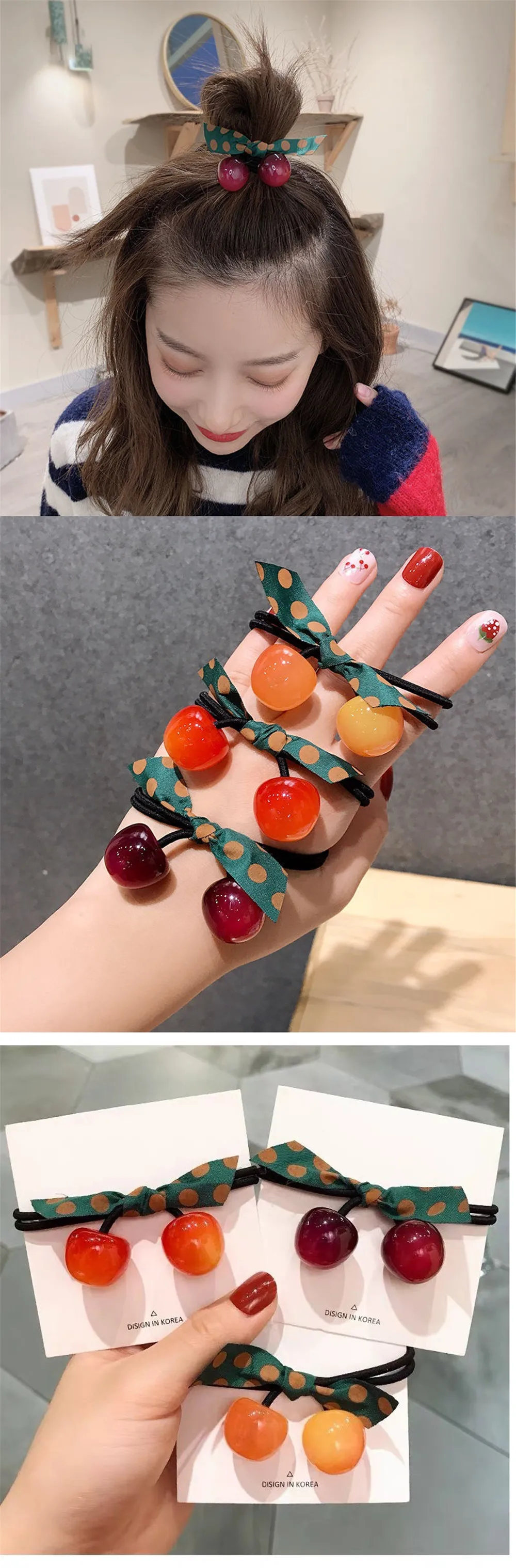 Женские эластичные резинки для волос, резиновый галстук для девочек, акриловая вишневая бабочка, узел в горошек, корейские аксессуары, резинки для волос, ободки, оптовая продажа, комплекты