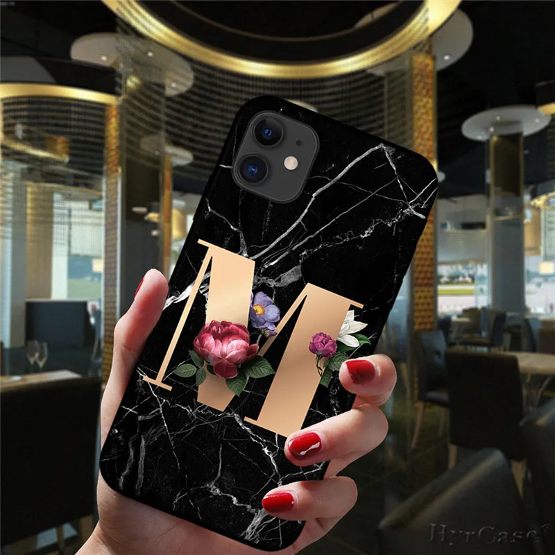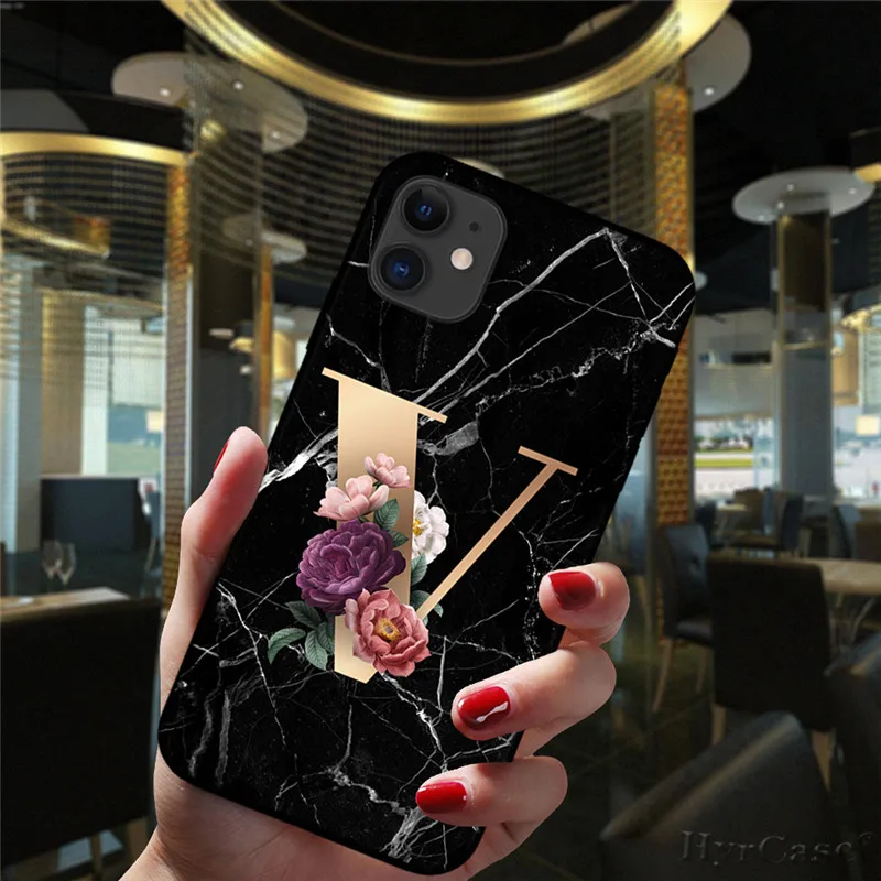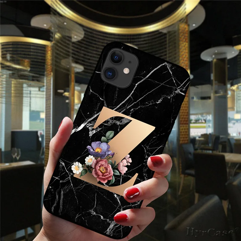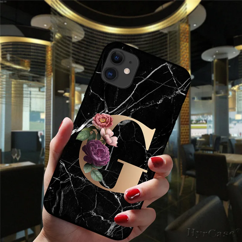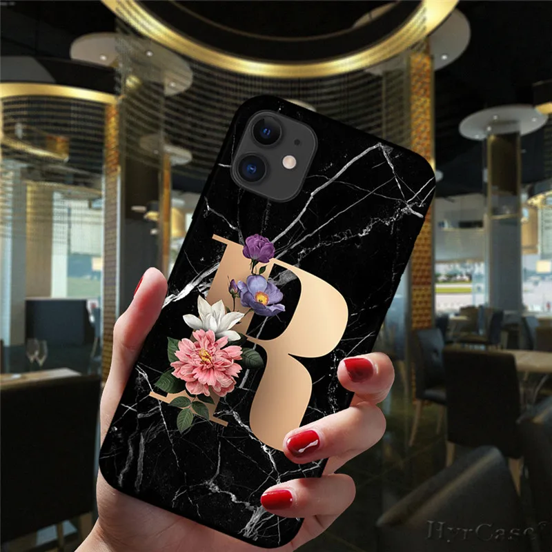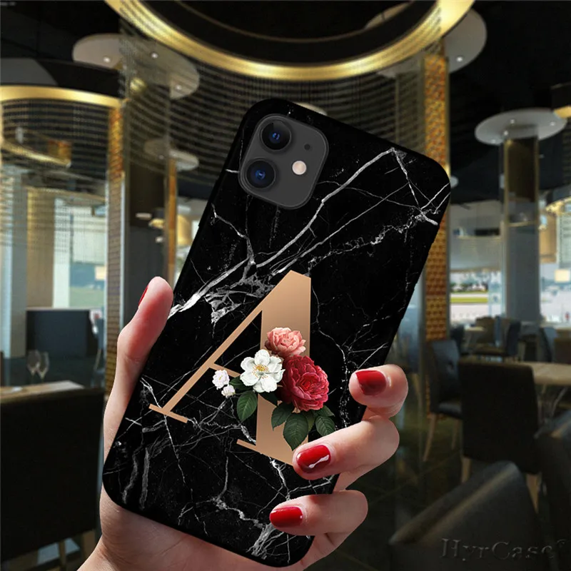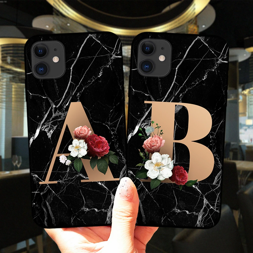 Чехол для iPhone 12 Mini 11 Pro Max 8 7 X XS XR SE 2 с мраморным цветком на заказ, 26 Английских исходных букв, силиконовые чехлы