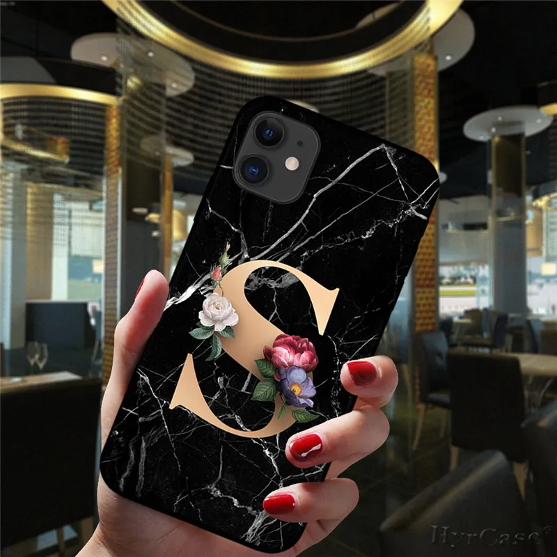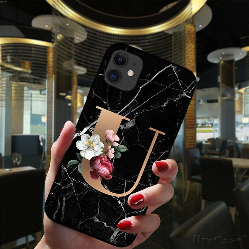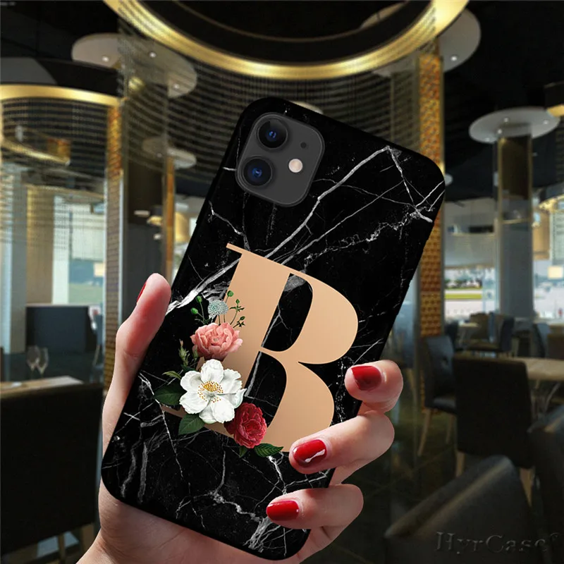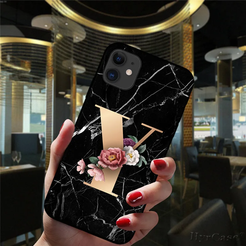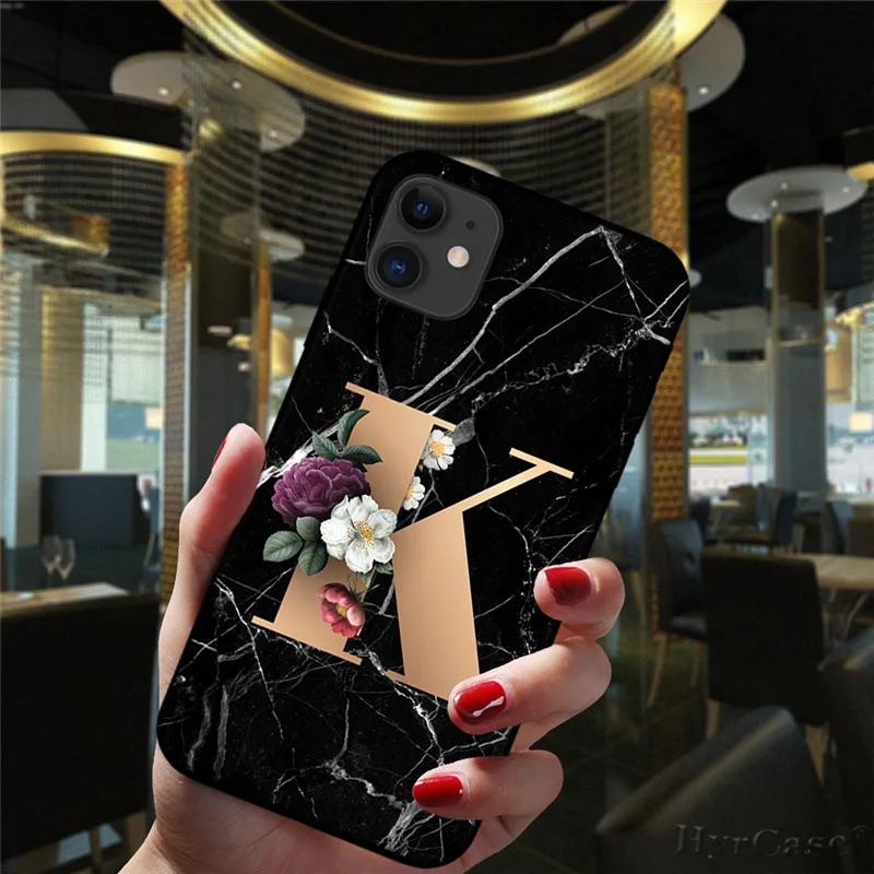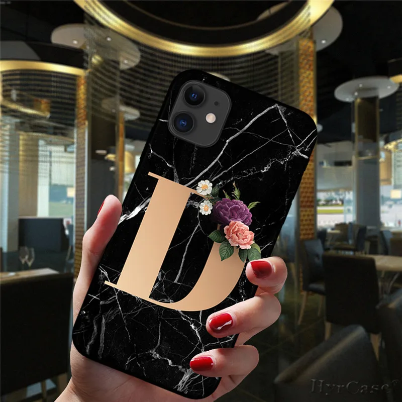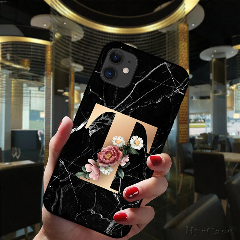 Чехол для iPhone 12 Mini 11 Pro Max 8 7 X XS XR SE 2 с мраморным цветком на заказ, 26 Английских исходных букв, силиконовые чехлы