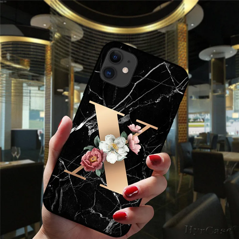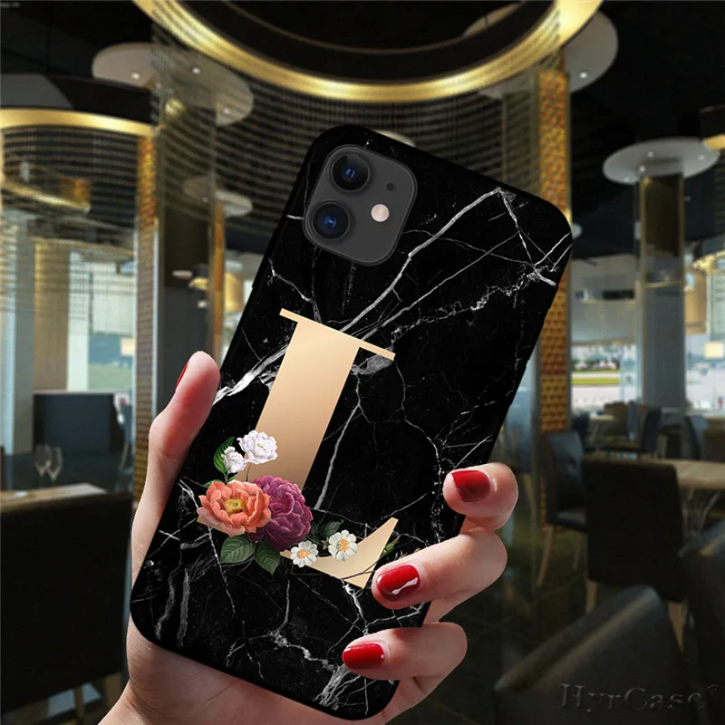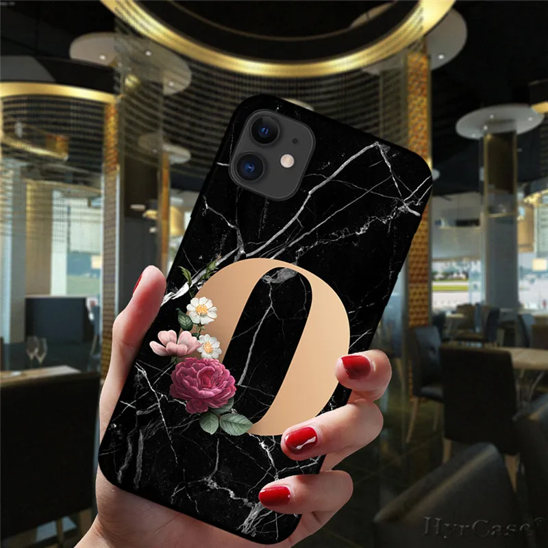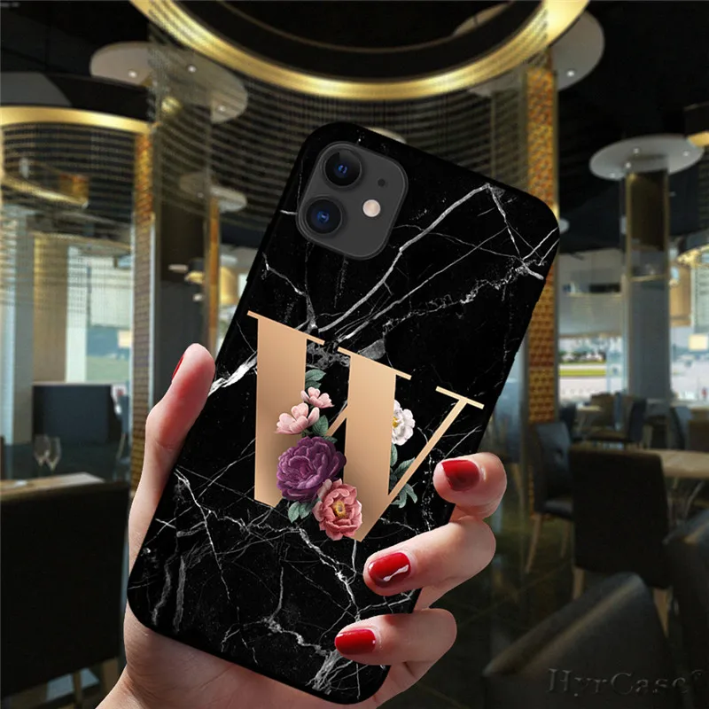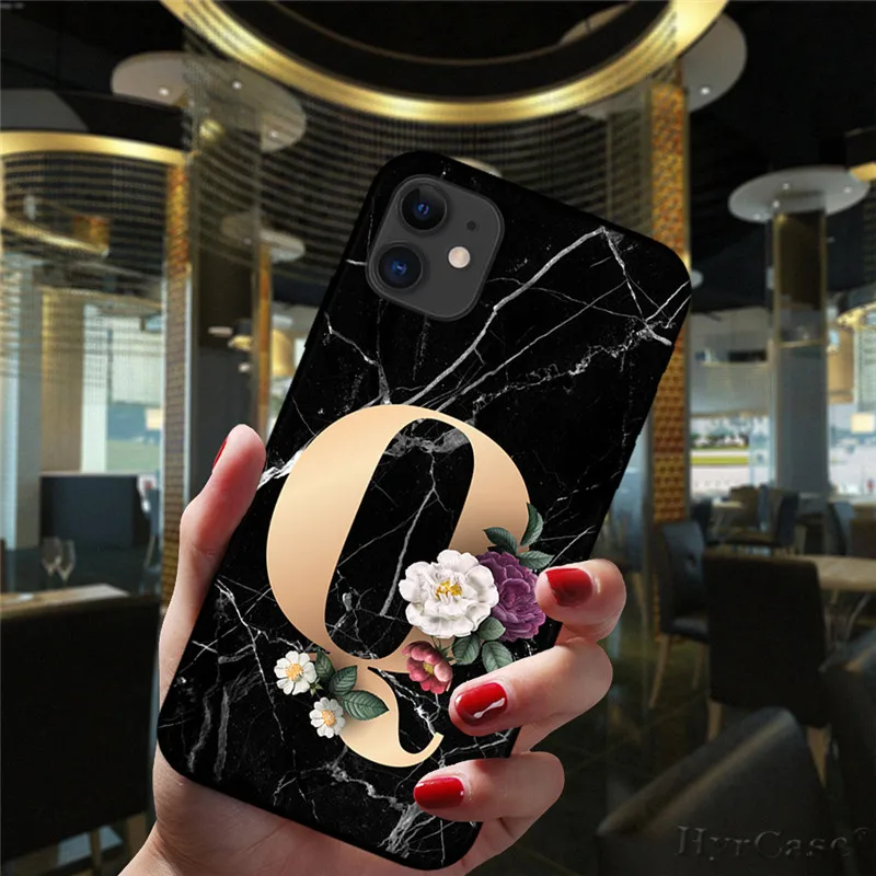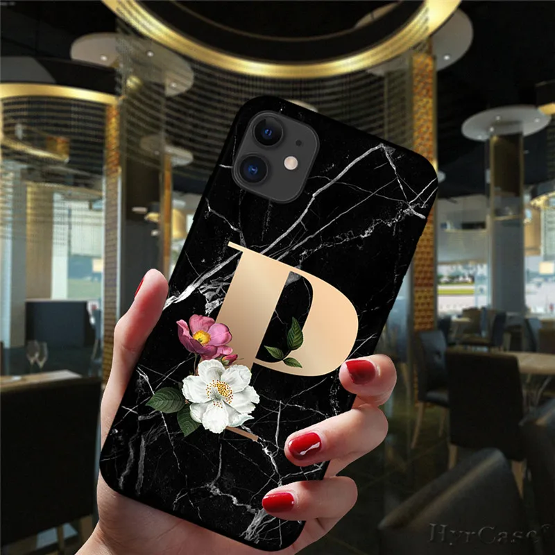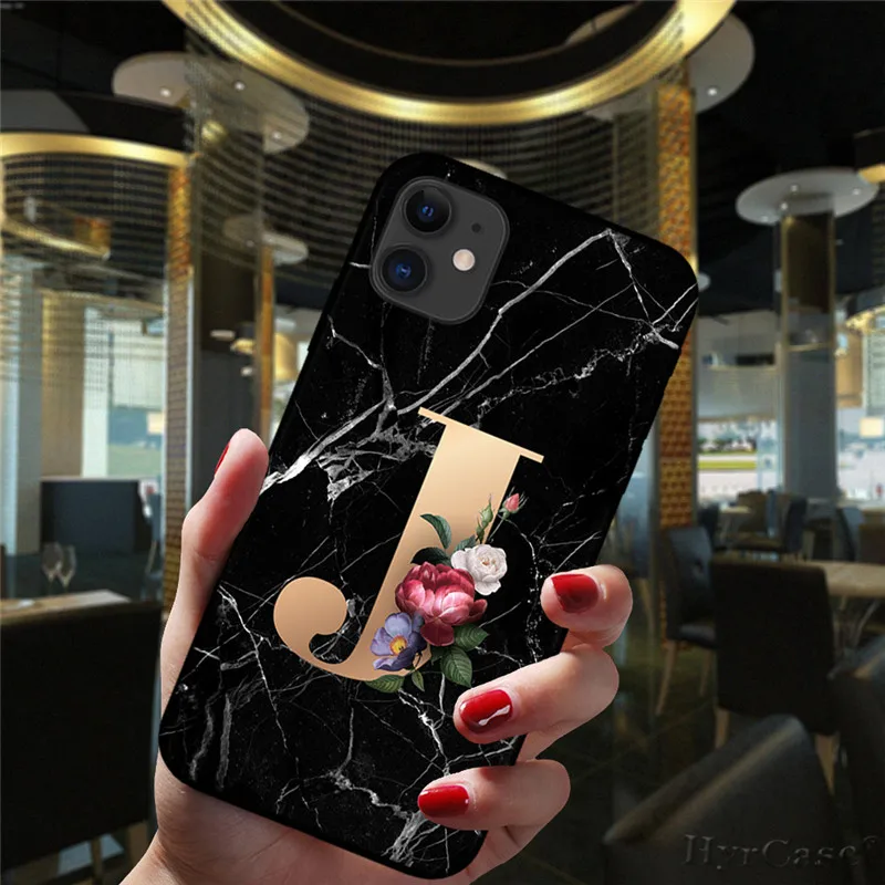 Чехол для iPhone 12 Mini 11 Pro Max 8 7 X XS XR SE 2 с мраморным цветком на заказ, 26 Английских исходных букв, силиконовые чехлы