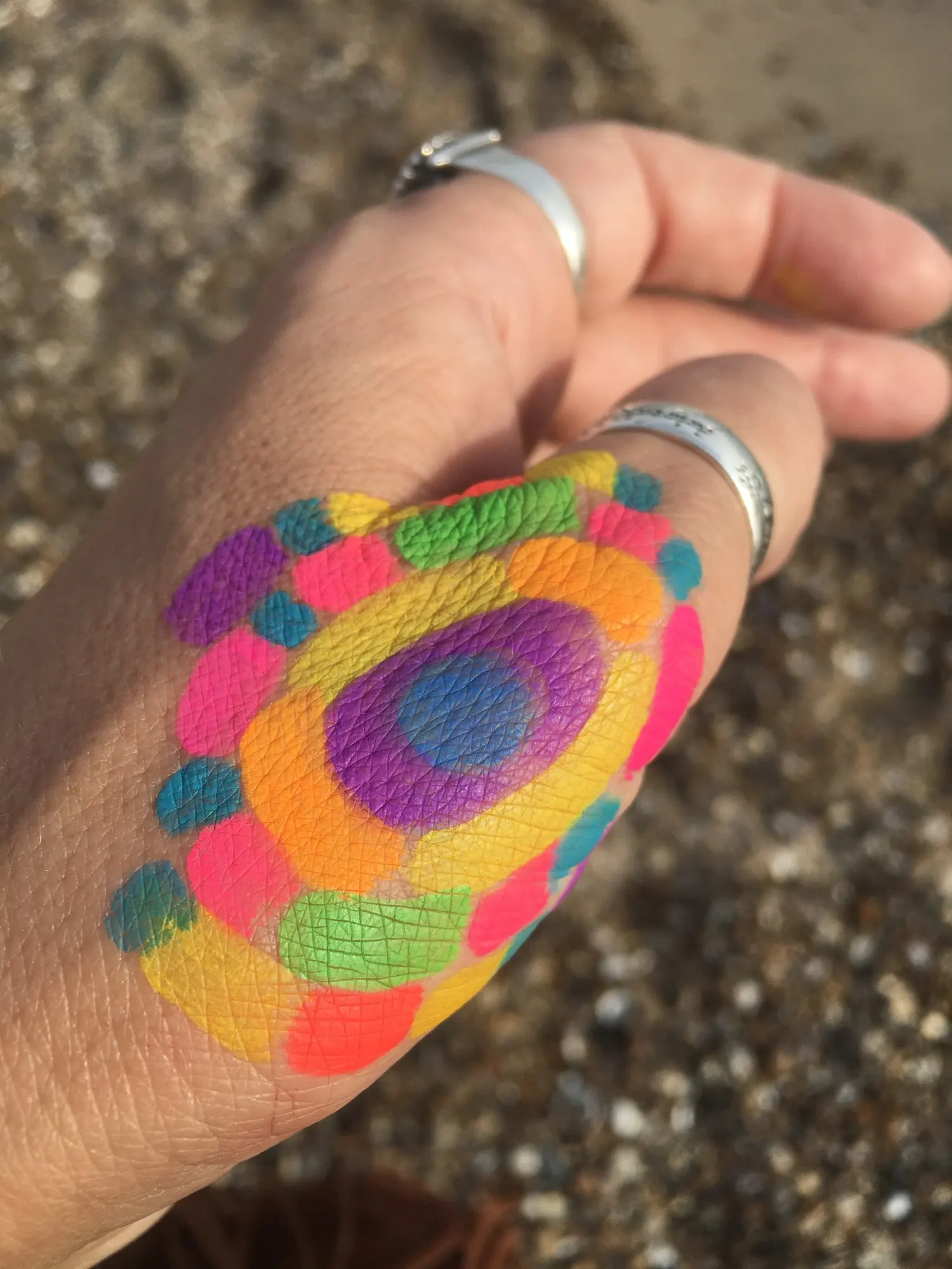 светиться под ультрафиолетом, цвета насыщенные, только немного смачивать нужно!!!