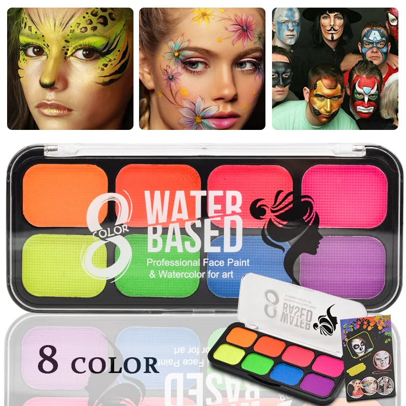 8 цветов, палитра краски для лица и тела, УФ-лампа, светящаяся, для вечевечерние НКИ на Хэллоуин, макияж для лица и тела, Палетка для рисования татуировок