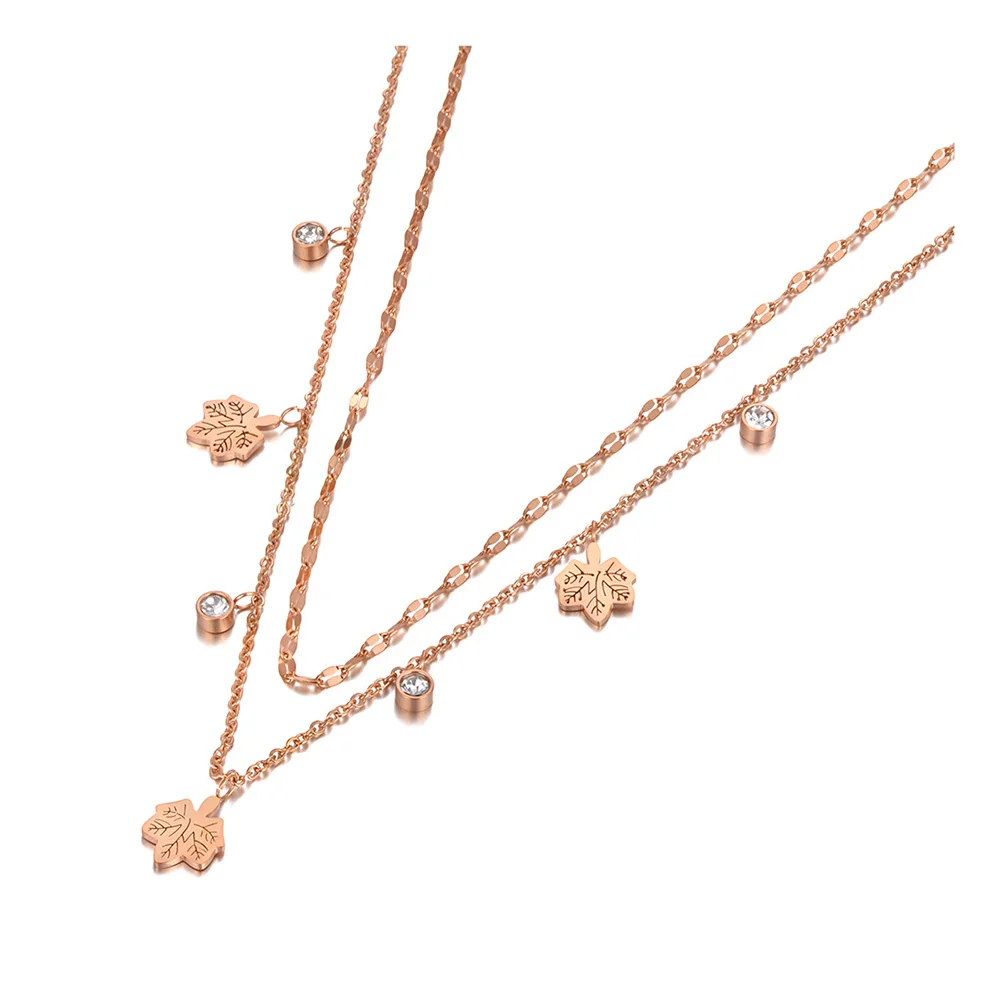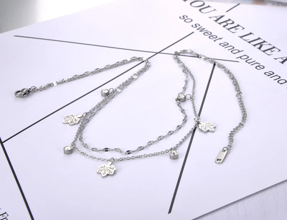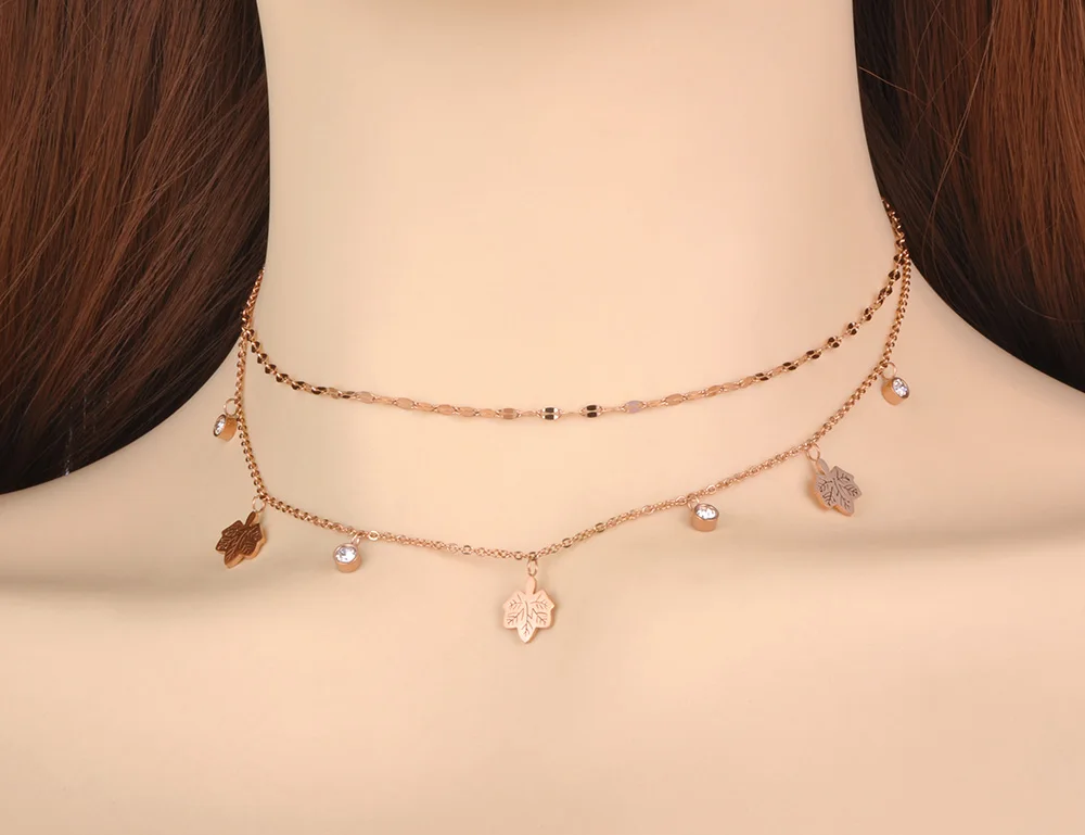 Чокер Lokaer N20232 женский из богемной нержавеющей стали, Двухслойное ожерелье с кристаллами кленового листа, Ювелирное Украшение с цепочка с подвеской звеньями
