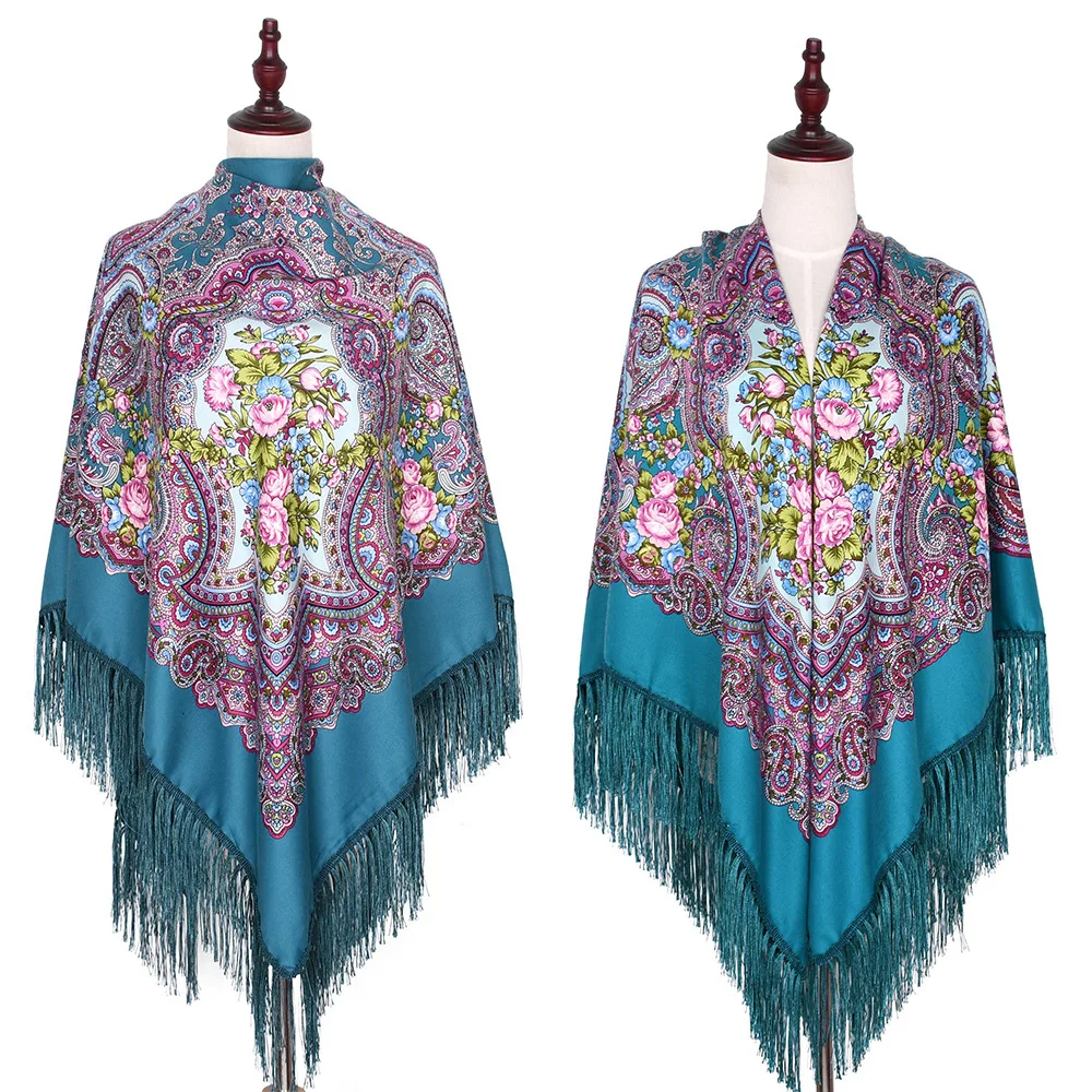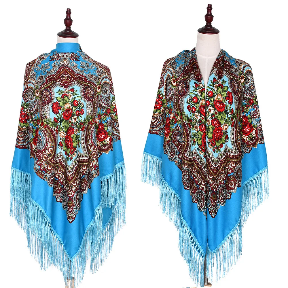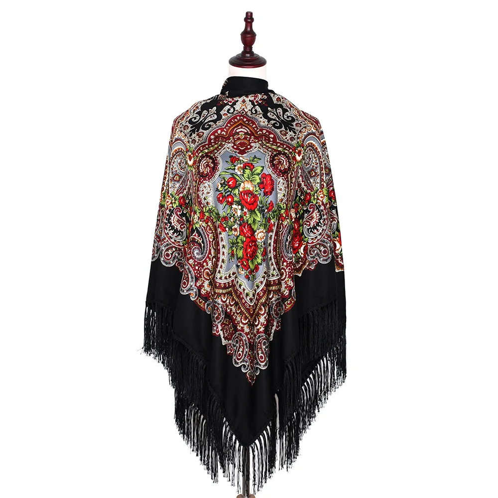 160*160 см женский русский Национальный квадратный шарф ретро цветочный узор бахрома шарфы хиджаб головной убор дамское российское одеяло шаль
