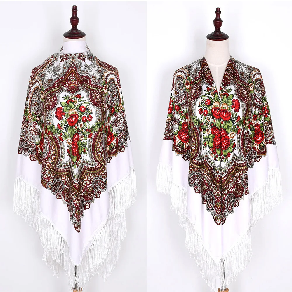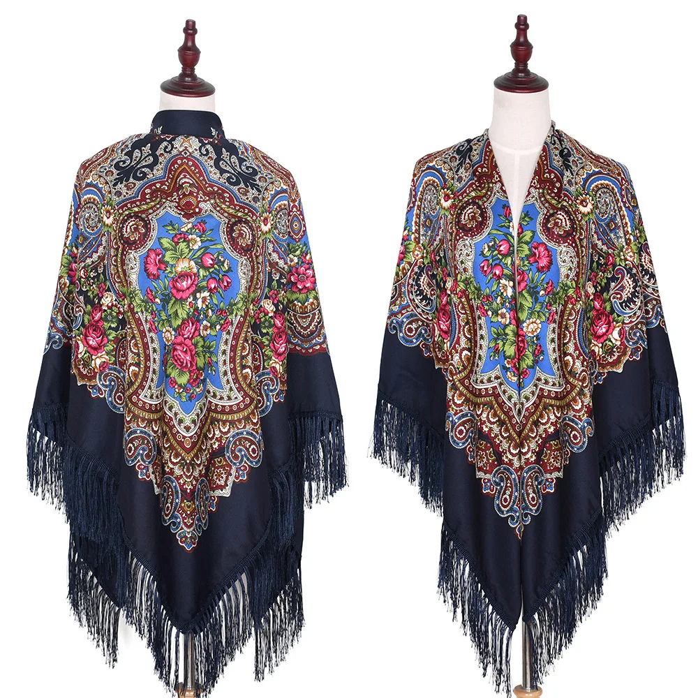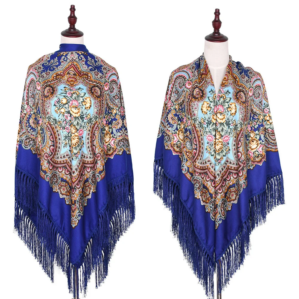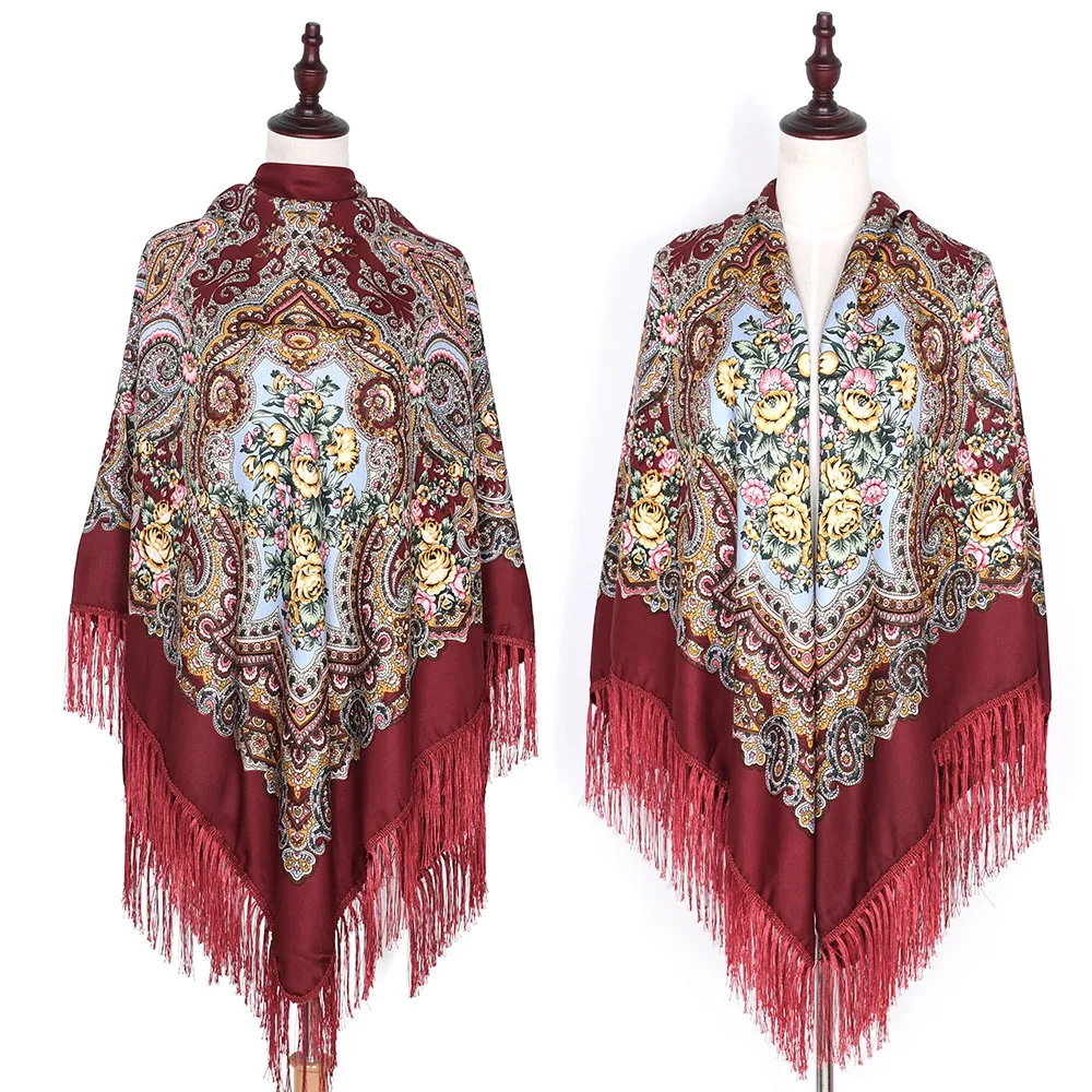 160*160 см женский русский Национальный квадратный шарф ретро цветочный узор бахрома шарфы хиджаб головной убор дамское российское одеяло шаль
