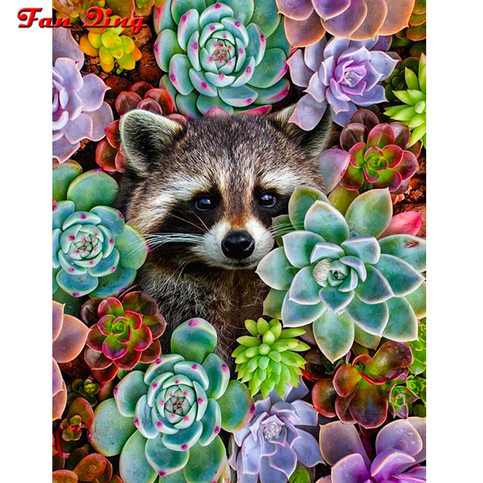 5D Diy алмазная живопись суккулентные растения и еноты вышивка мозаика Вышивка крестом полностью квадратные круглые стразы украшение для дома