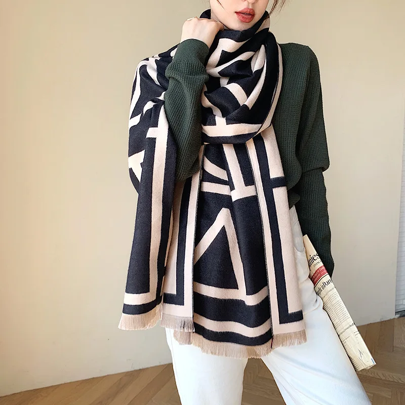 2021 роскошный брендовый полосатый Женский зимний шарф из пашмины т...