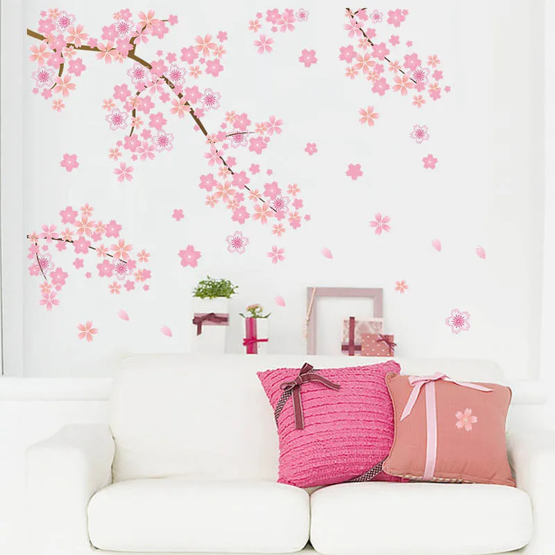 Новинка, виниловые наклейки на стену с розовыми бабочками, цветами и деревом, художественные наклейки на стену сделай сам для Наклейки для декора, декоративные съемные наклейки для домашней комнаты