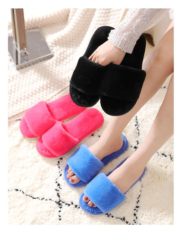 Тапочки женские домашние из искусственного меха, плюшевые, без заст...