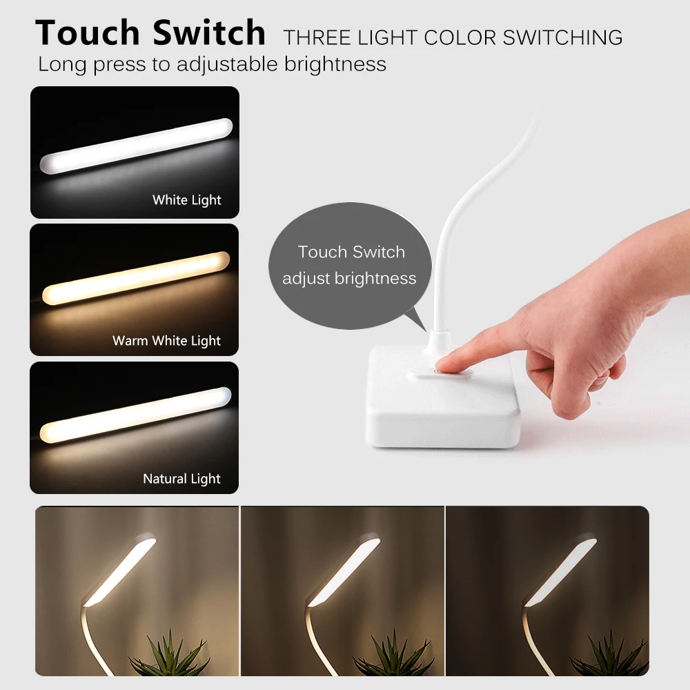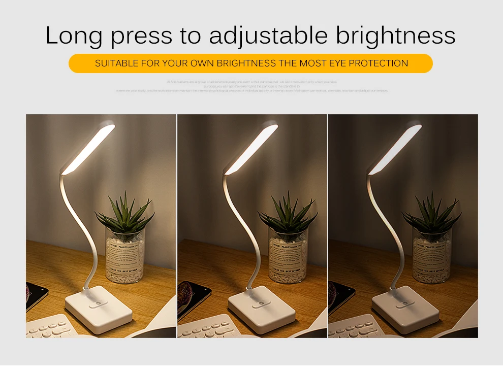 Настольная светодиодная лампа, 3 режима, регулировка яркости, перезаряжаемая USB светодиодный ная лампа для чтения, защита глаз, свет для изучения