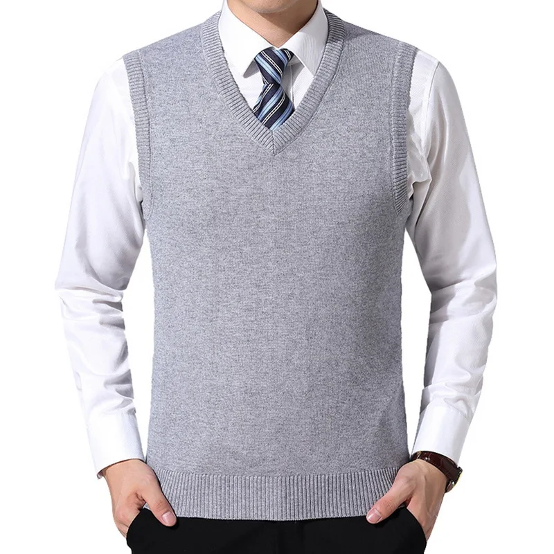 Мужской вязаный свитер, жилет, однотонный кашемировый свитер, пуловер без рукавов, Мужской приталенный Трикотажный жилет с V-образным вырезом, 2020