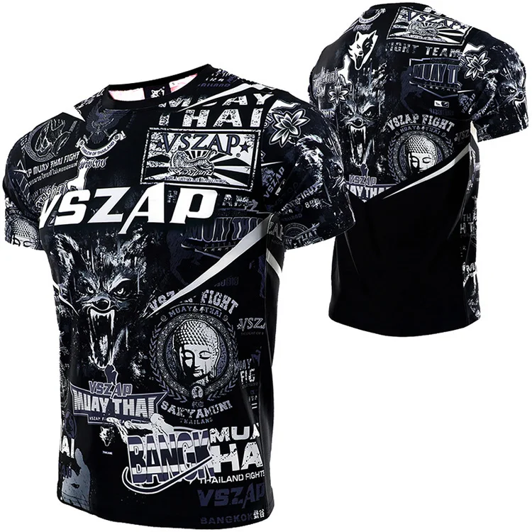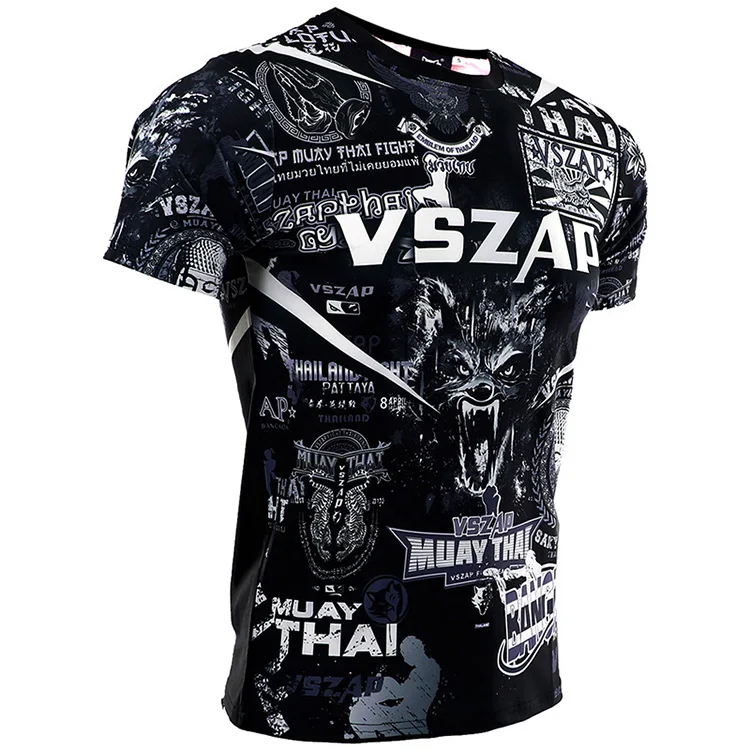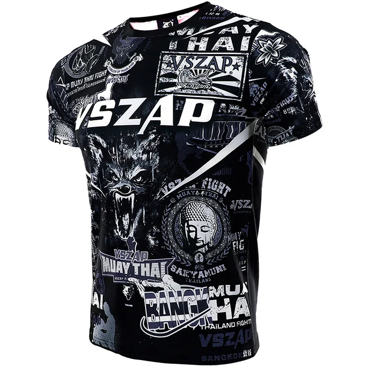 Мужская Спортивная Футболка VSZAP Mma Muay Thai, футболка из Джерси с коротким рукавом и принтом аниме, компрессионные колготки, рубашка для бокса, толстовка Muaythai