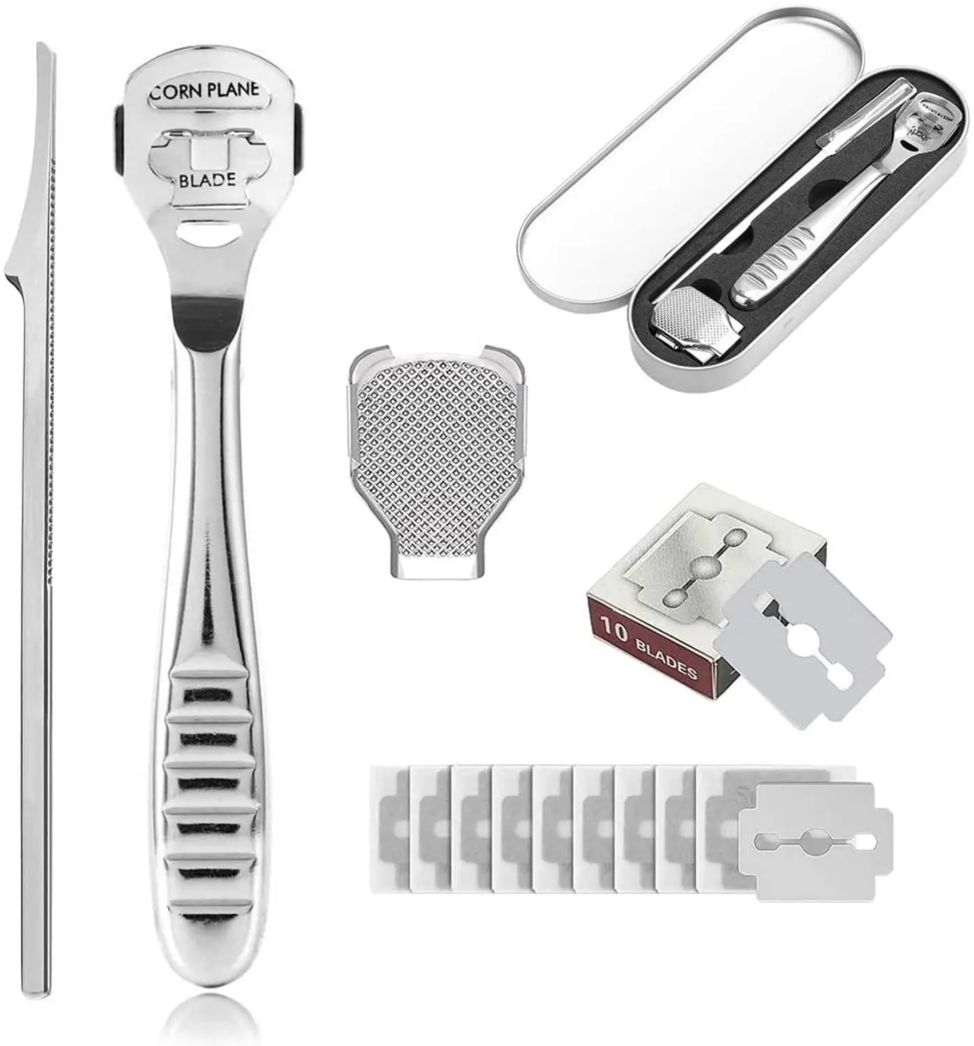 Пилка для ног, 10 сменных лезвий, нержавеющая сталь