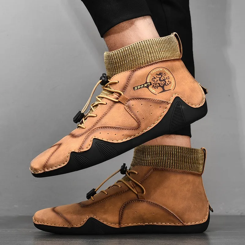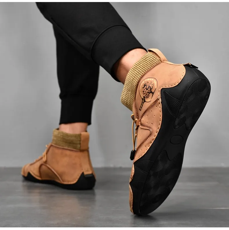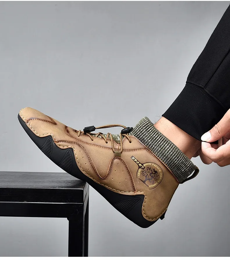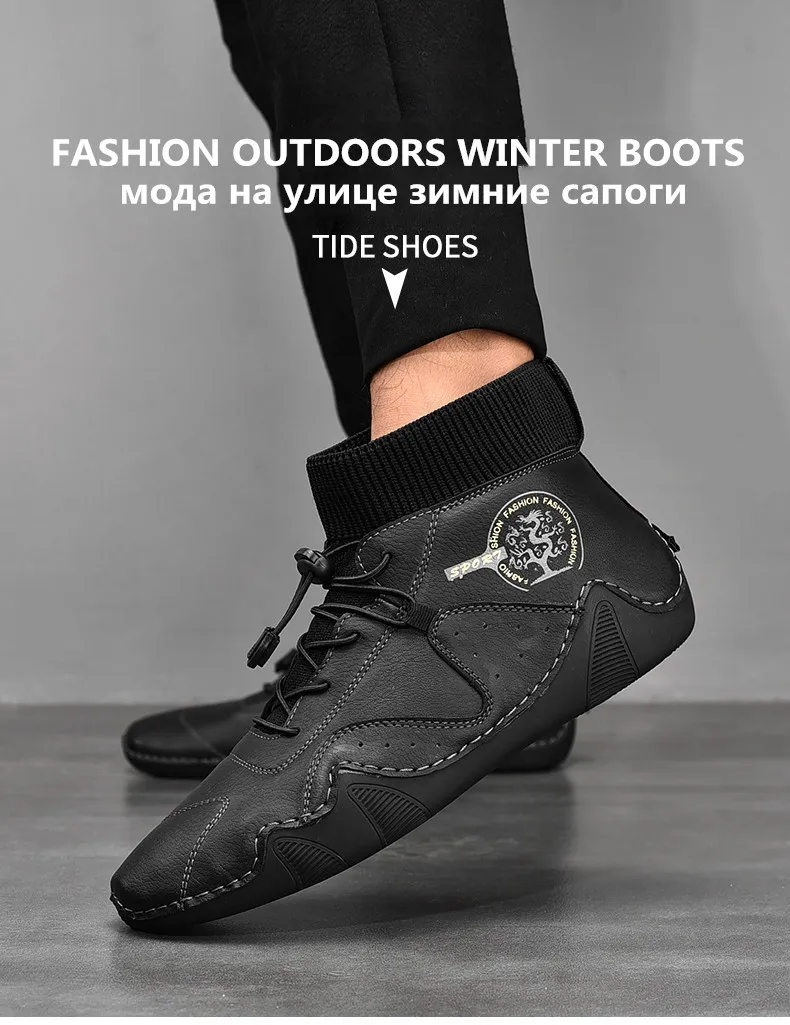 Брендовые мужские зимние ботинки; Теплые зимние мужские байкерские ботинки из плюша; Мужские Нескользящие ботильоны на шнуровке; Водонепроницаемая Осенняя мужская Рабочая обувь