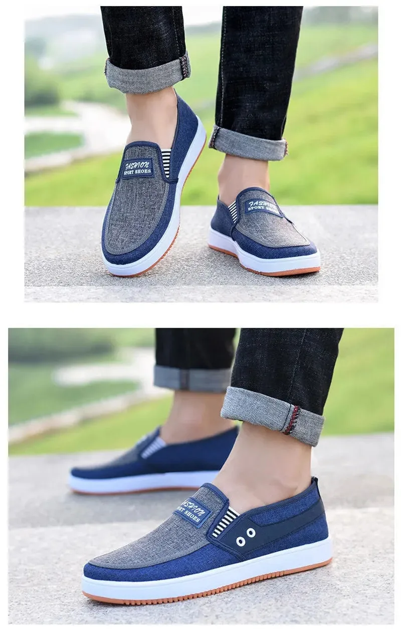 Мужские парусиновые туфли, темно-синие классические мокасины, Повсе...