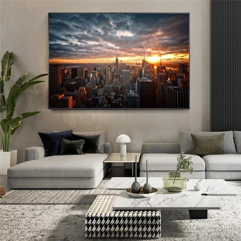 Холст с изображением заката, Нью-Йорка, настенные картины, художест...
