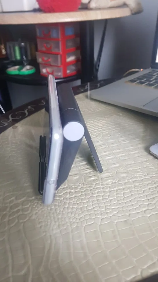 удобная подставка для телефона, можно регулировать наклон от 0 до 90 градусов. Шикарная штука. Рекомендую.