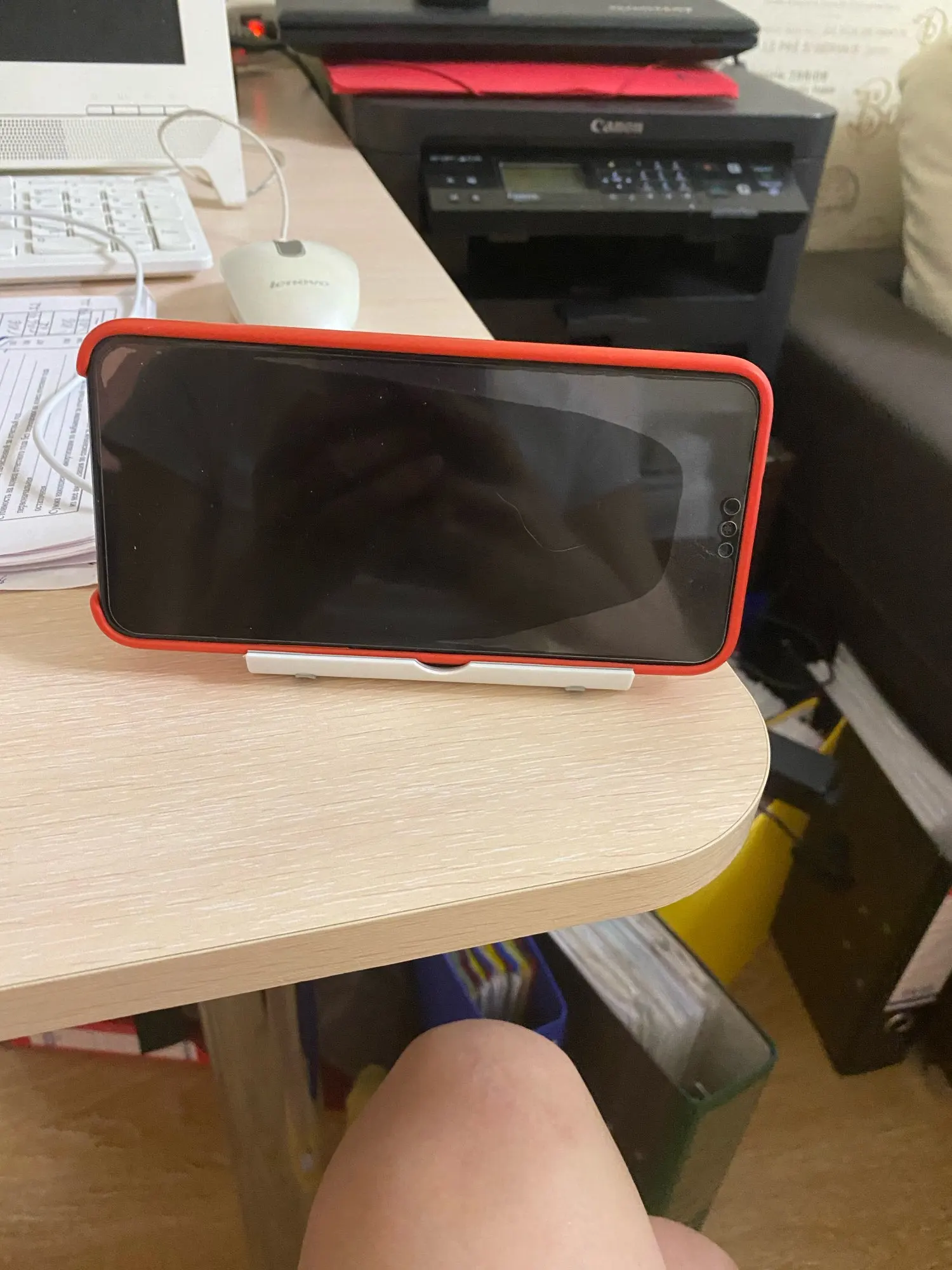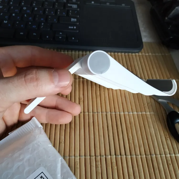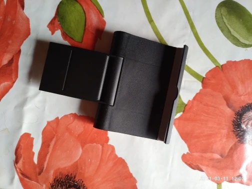 Доставлено быстро, недели три до Мск. В общем, дешевая пластмасса, но свои функции выполняет. Толстый телефон (iPhone II) вполне влезает в узкое пространство (см. Фото). Внизу пористая резина. За такую цену терпимо. Однако снизу видны следы клея (как будто противоскользящую резину отодрали, см. Фото), без резинки подставка легко ездит по столу, что не очень хорошо.