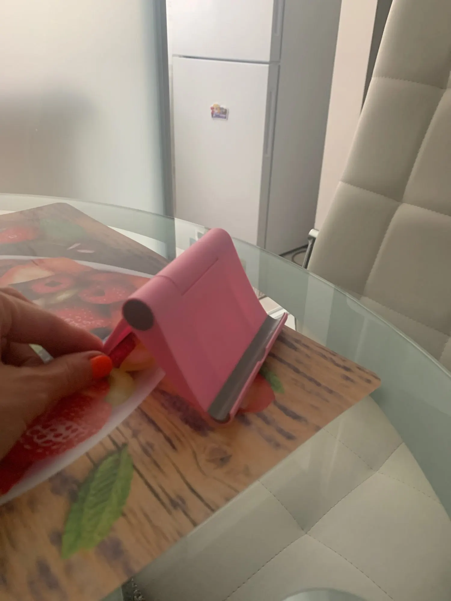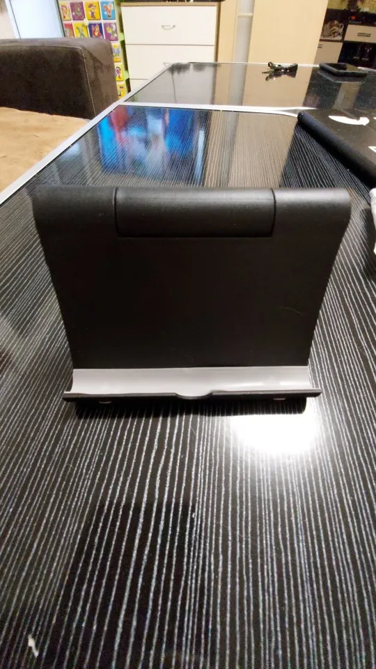 Хорошая удобная подставка под мобилу, можно и высоко поставить и низко опустить , что очень удобно за столом , когда кушаешь. Заказывала 2 ой раз для сына.