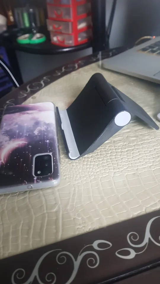Хорошая, удобная подставка для телефона. Можно брать с собой, так как складывается и не занимает много места. Есть силиконовая вкладка, чтобы не повредить телефон. Доставка быстрая