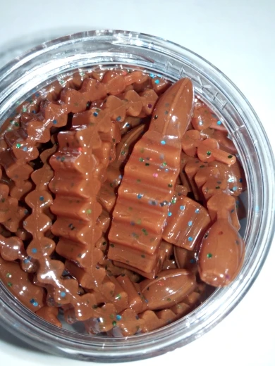 Силикон мягкий, червячки подвижные, запах как и обещано есть. интересная форма червя, он по бокам сплющен. Ждем весны чтобы проверить как играть будет. Очень быстрая доставка.