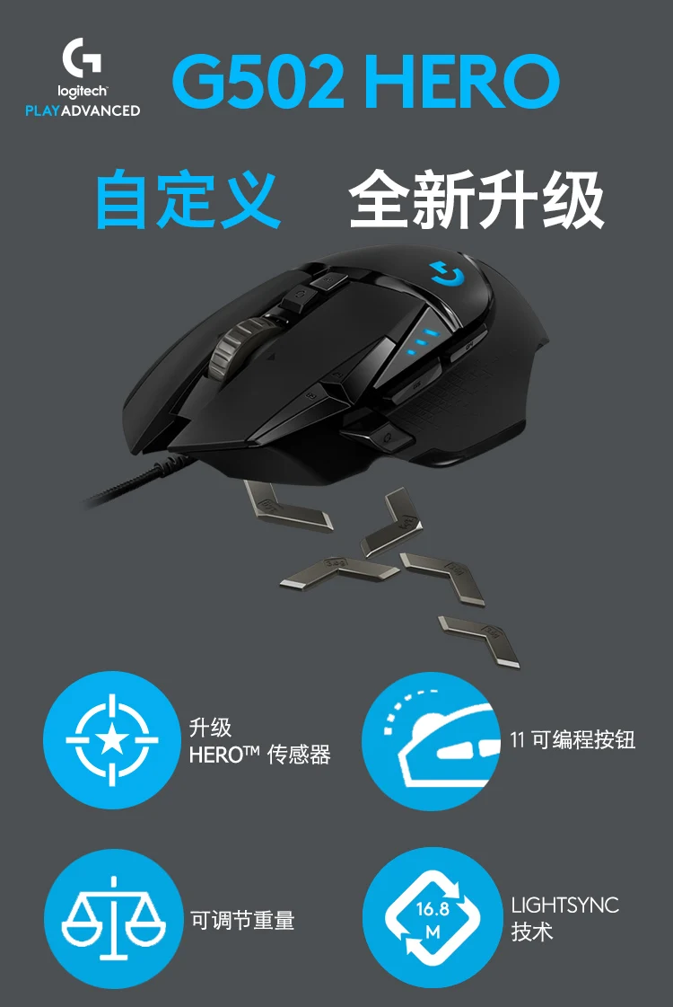 Logitech G502 HERO высокопроизводительная игровая мышь двигатель с ...