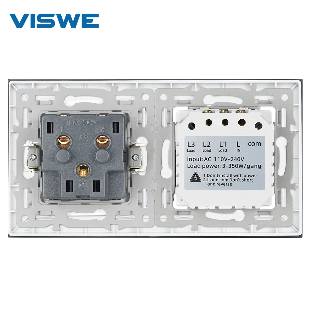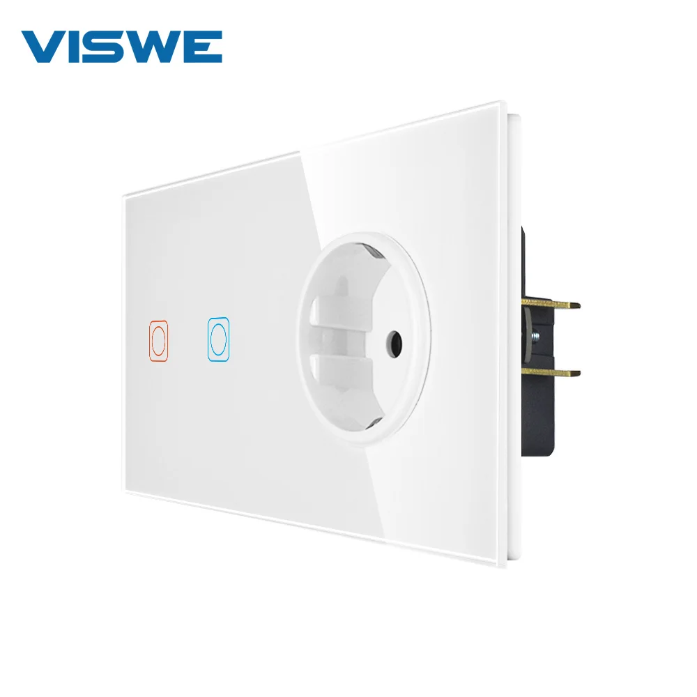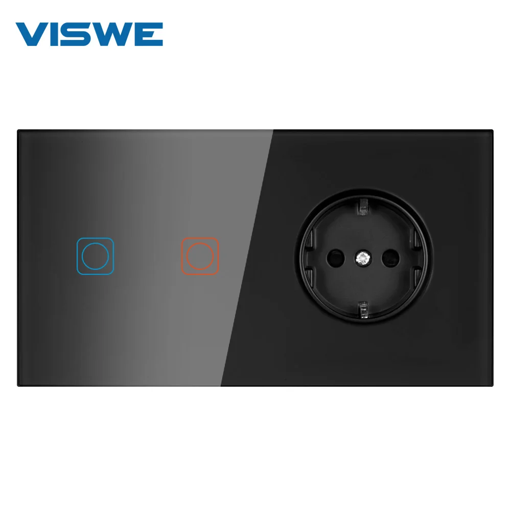 Сенсорный выключатель VISWE, 2 комплекта, 1-позиционный, с панелью из закаленного стекла по стандарту ЕС, электронная розетка, светодиодный сенсорный экран, настенный выключатель света
