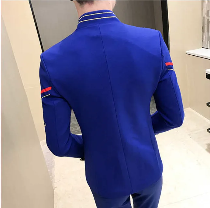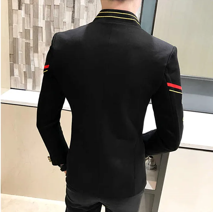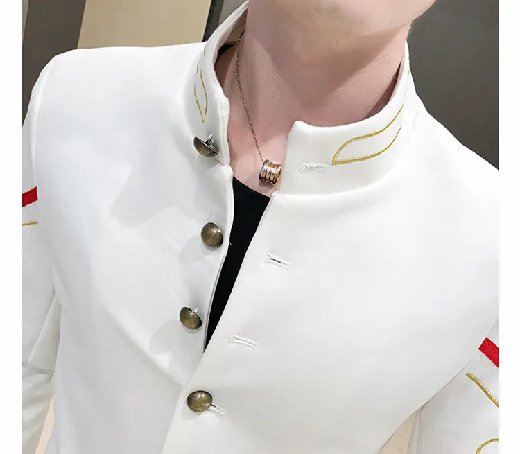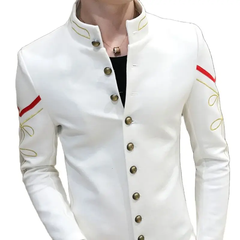 Мужской блейзер с золотыми пуговицами, однобортный, с воротником-стойкой, с вышивкой, приталенный, модная верхняя одежда, 4 цвета на выбор, жакета
