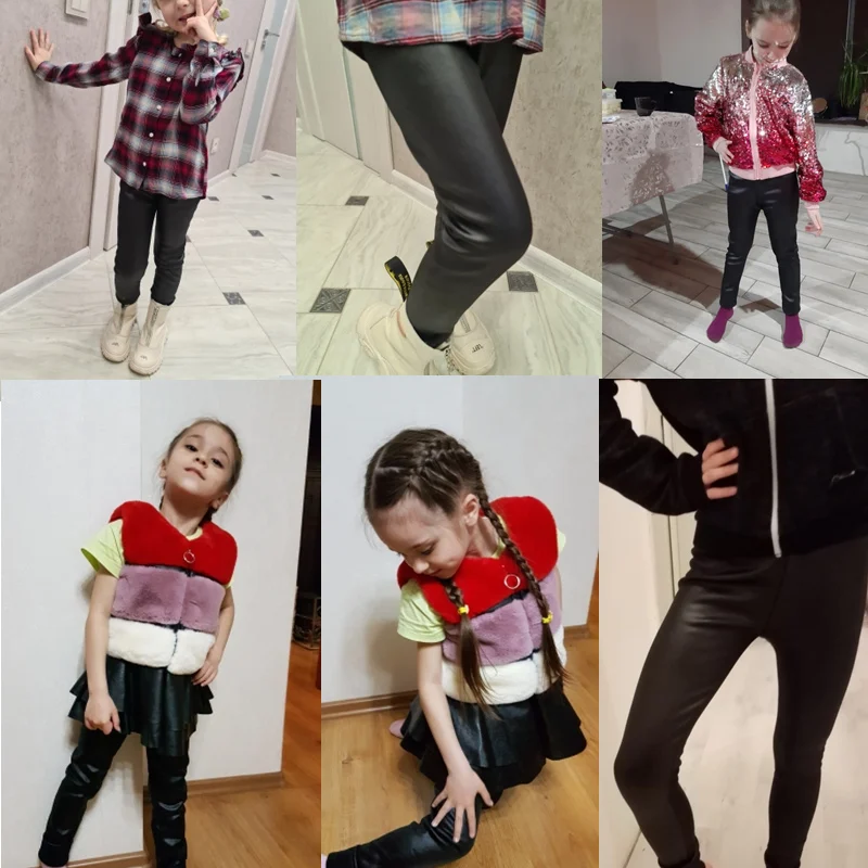 Леггинсы для девочек, кожаные, зимние, из искусственной кожи
