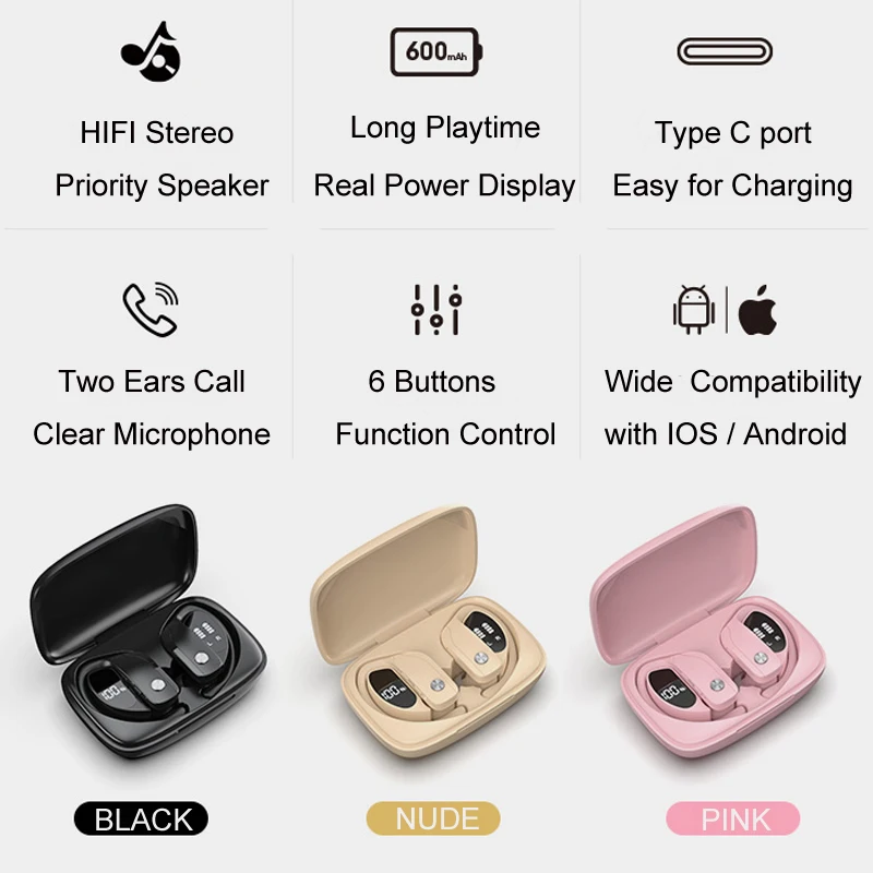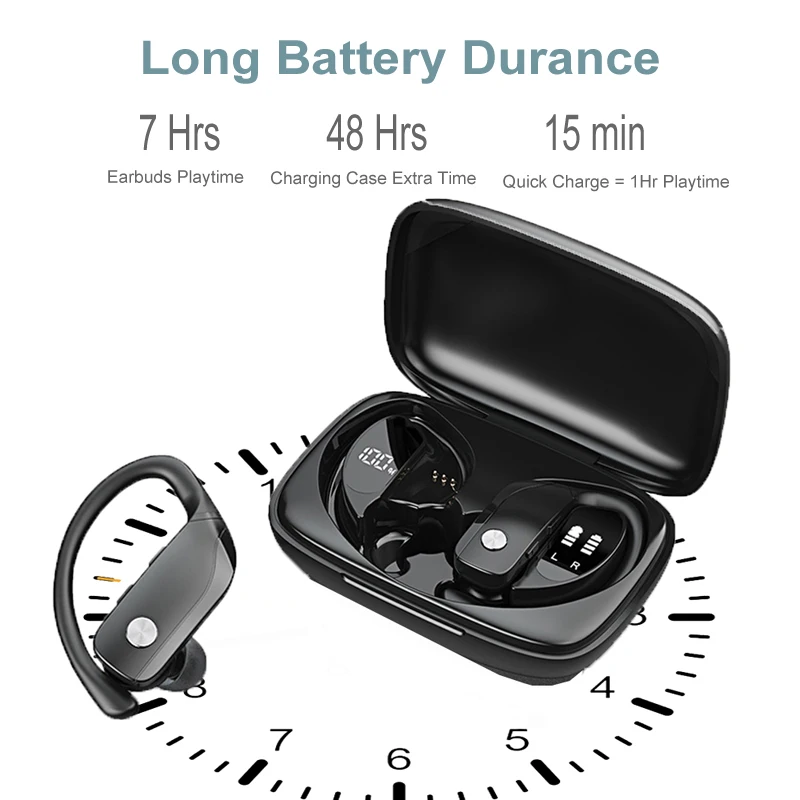 Регулируемые и безопасные силиконовые ушные крючки и эргономичный дизайн гарантируют комфорт ваших спортивных наушников при занятиях спортом, беге, походах, беге и других видах деятельности и т. д. Оснащен 3 парами ушных колпачков (L/M/S) для вашего выбора, чтобы получить наиболее подходящий размер. Даже если вы занимаетесь тяжелыми упражнениями, Не беспокойтесь о том, что наушники упадут. И IPX5 защита от брызг защищает Спортивные Беспроводные наушники от падения воды или пота